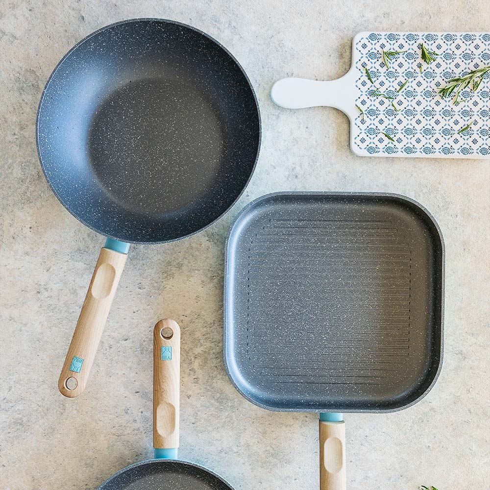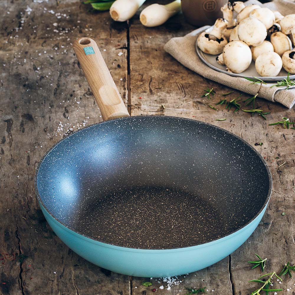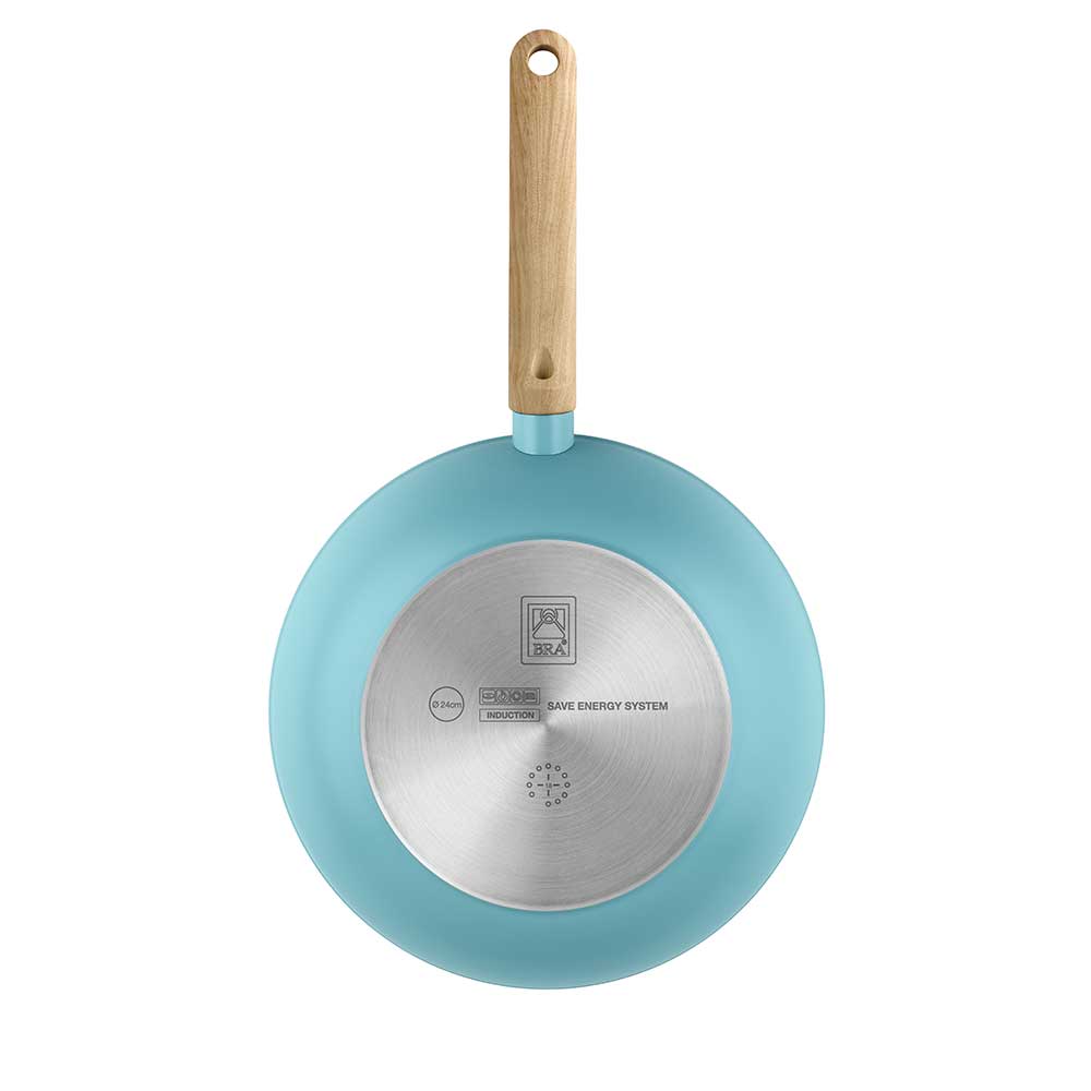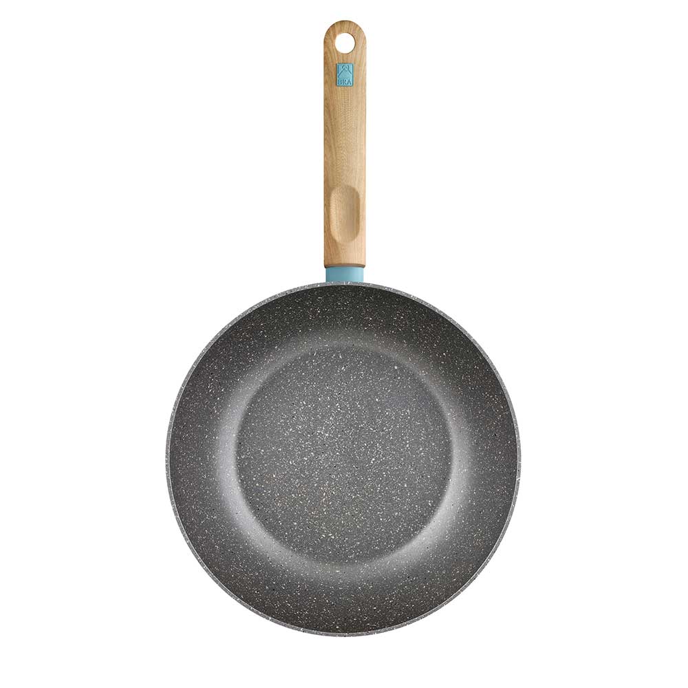 Le Wok Nordik combine un revêtement antiadhésif extraordinaire avec un design moderne et actuel, pour une performance exceptionnelle en cuisine avec les meilleurs résultats. C'est un wok robuste et durable grâce à son corps fabriqué en aluminium forgé et à la qualité supérieure de son revêtement antiadhésif tricouche Quantanium® PPG renforcé par du titane, ultra résistant et sans PFOA.Il est adapté à toutes les sources de chaleur (y compris l'induction) grâce à son fond diffusant full induction, qui permet un maximum d'utilisation de l'énergie pour une cuisine plus efficace. De plus, il répartit merveilleusement la température pour une cuisson parfaite de toutes nos recettes.Son excellente antiadhérence offre une performance exceptionnelle, permettant de cuisiner sans ou avec très peu d'huile, pour des résultats plus sains.Son design moderne d'inspiration nordique, avec des détails et un corps extérieur en bleu glacier, lui confère une grande beauté. La poignée est ergonomique et thermo-isolante avec une texture douce au toucher et une imitation bois. Le wok est idéal pour préparer de délicieuses recettes, cuites sans ou avec très peu d'huile, et en très peu de temps. Sa poignée ergonomique thermo-isolante rend la cuisine avec lui très confortable et simple. Il est très polyvalent, car en plus d'être parfait pour faire sauter et frire les aliments, vous pouvez également braiser, bouillir ou cuire à la vapeur. Vous pourrez cuisiner une infinité de recettes, toutes pleines de saveur et très saines. En associant des nouilles ou du riz avec vos légumes, poissons et viandes préférés, vous aurez un repas délicieux en très peu de temps. Un wok de nouilles avec poivron, oignon, carotte et poireau, avec un peu de sauce aux huîtres à la fin de la cuisson, ou un de riz avec poulet ou bœuf et champignons variés, avec une légère touche de sauce soja. Il est idéal pour cuisiner un délicieux plat de nouilles de courgette ou de carotte avec quelques crevettes, assaisonné à la fin avec une cuillère à café de sauce Worcestershire. Il est également parfait pour faire sauter n'importe quel accompagnement que nous voulons servir avec un plat principal, comme des fleurs de brocoli, des carottes miniatures ou des pois chiches assaisonnés avec vos épices préférées. Robuste et durable, son antiadhésif exceptionnel garantit de grands résultats. De plus, il est facile à manipuler grâce à sa poignée ergonomique thermo-isolante. Vous cuisinerez vos recettes de manière saine, rapide et très efficace, avec des résultats pleins d'arôme et de saveur. CaractéristiquesFabriqué en aluminium forgé extrêmement résistant à la déformation (4 mm d'épaisseur à la base) et 100% recyclable.Revêtement antiadhésif tricouche Quantanium® PPG renforcé par du titane, ultra résistant et sans PFOA.Fond full induction system compatible avec toutes les sources de chaleur, y compris l'induction, offrant une meilleure économie d'énergie.Poignée ergonomique thermo-isolante imitation bois avec un corps extérieur et un logo de BRA en bleu glacier.Surface ultra résistante. Wok de longue durée de vie.Facile à nettoyer à l'extérieur et à l'intérieur.Conçu en Espagne.MesuresDiamètre supérieurDiamètre fond inducteur28 cm18,3 cm