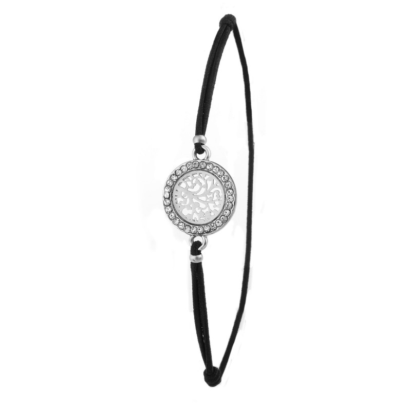Bracelet arbre de vie élastique noir par SC Crystal orné de Cristaux scintillants