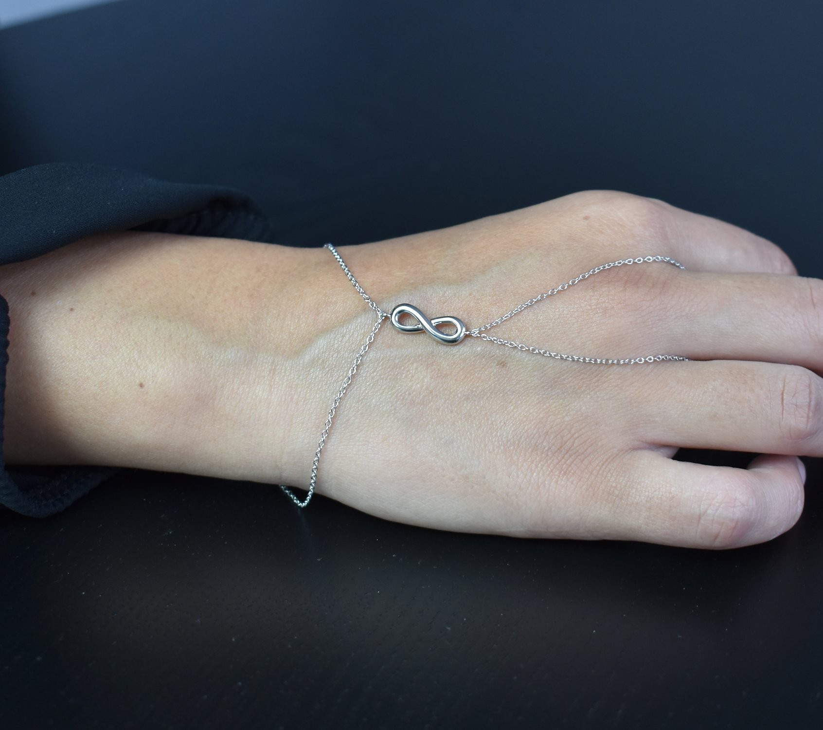 Bracelet bague chaîne de main infini Argent 925 Rhodié
