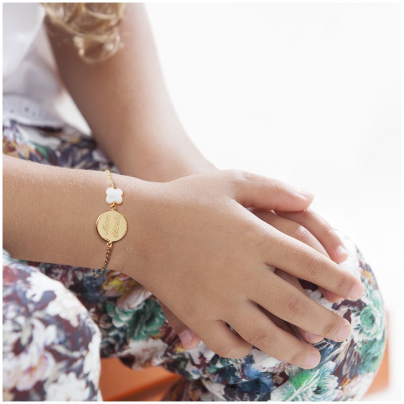 Bracelet chaine médaille nacre papillon plaqué or enfant - gravure MA CHÉRIE