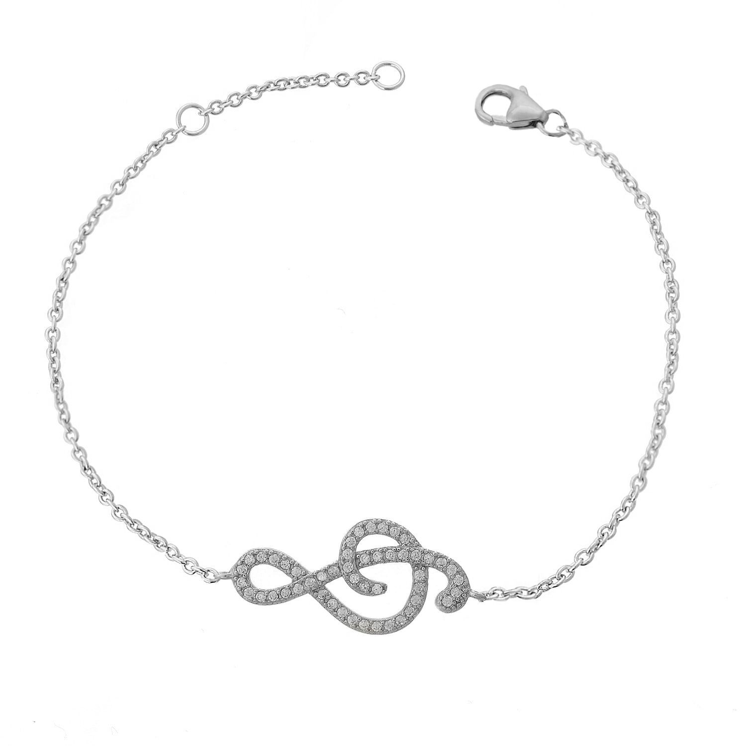 Bracelet clé de sol note de musique serti d'oxyde de zirconium Argent 925 Rhodié