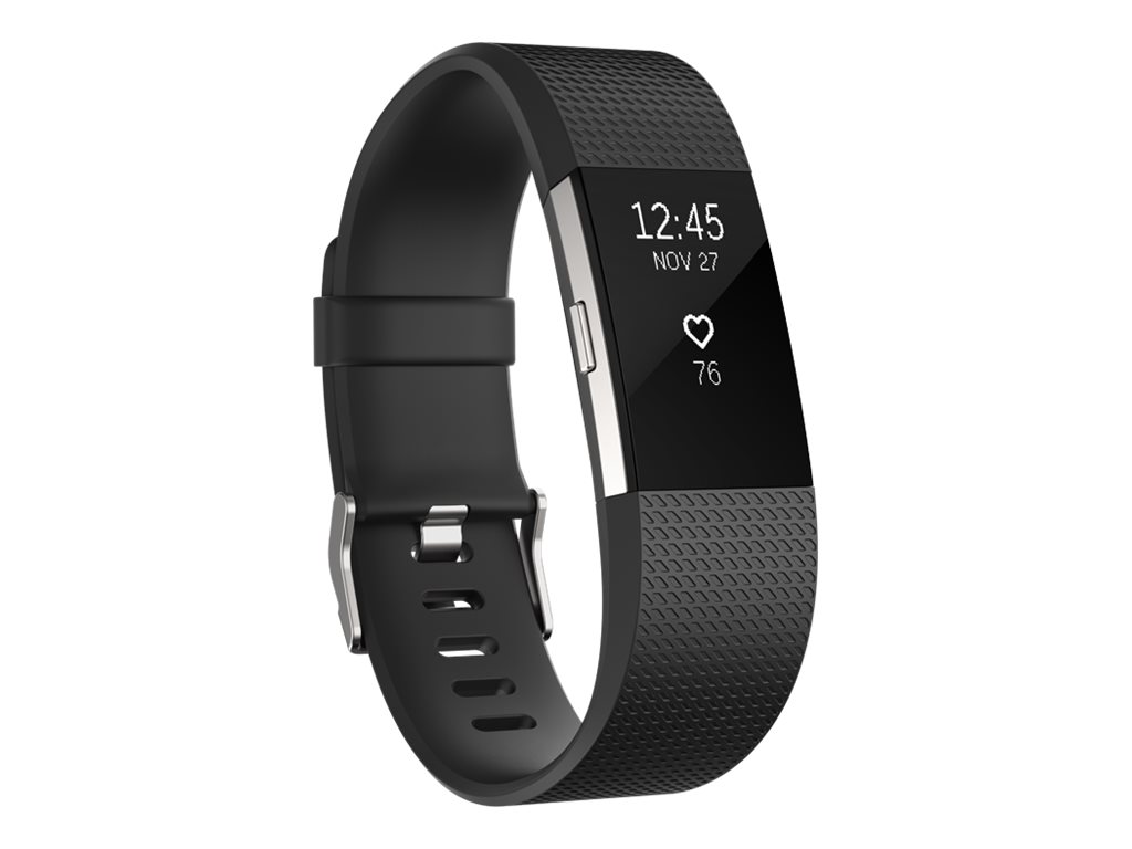 Coach de vie Fitbit charge 2 Noir et Argent Taille L Grand écran OLED tactile Fréquence cardiaque PurePulse® Suivi multisport et connexion au GPS du Smartphone Alertes appel, SMS et calendrier Niveau de forme cardio Séances de respiration guidées Suivi des activités quotidiennes Suivi automatique du sommeil Reconnaissance automatique des activités courantes et sportives SmartTrackâ„¢ Rappels d'activité Batterie longue durée jusqu'à  5 jours*