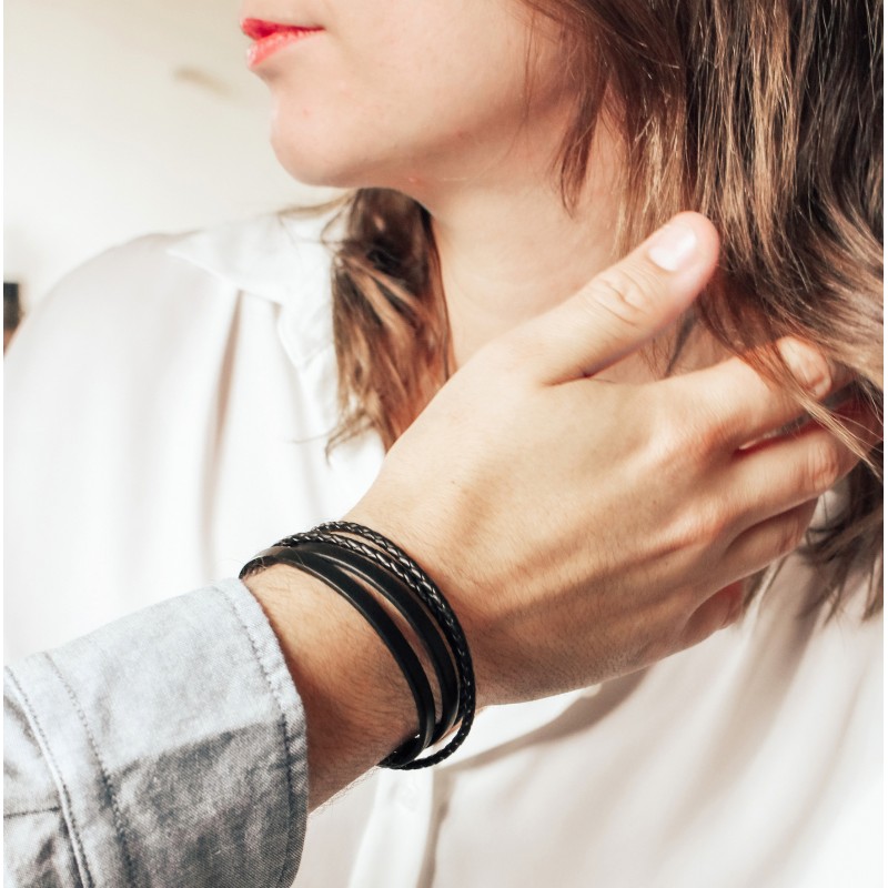Bracelet cuir le mix noir homme - gravure MON AMOUR