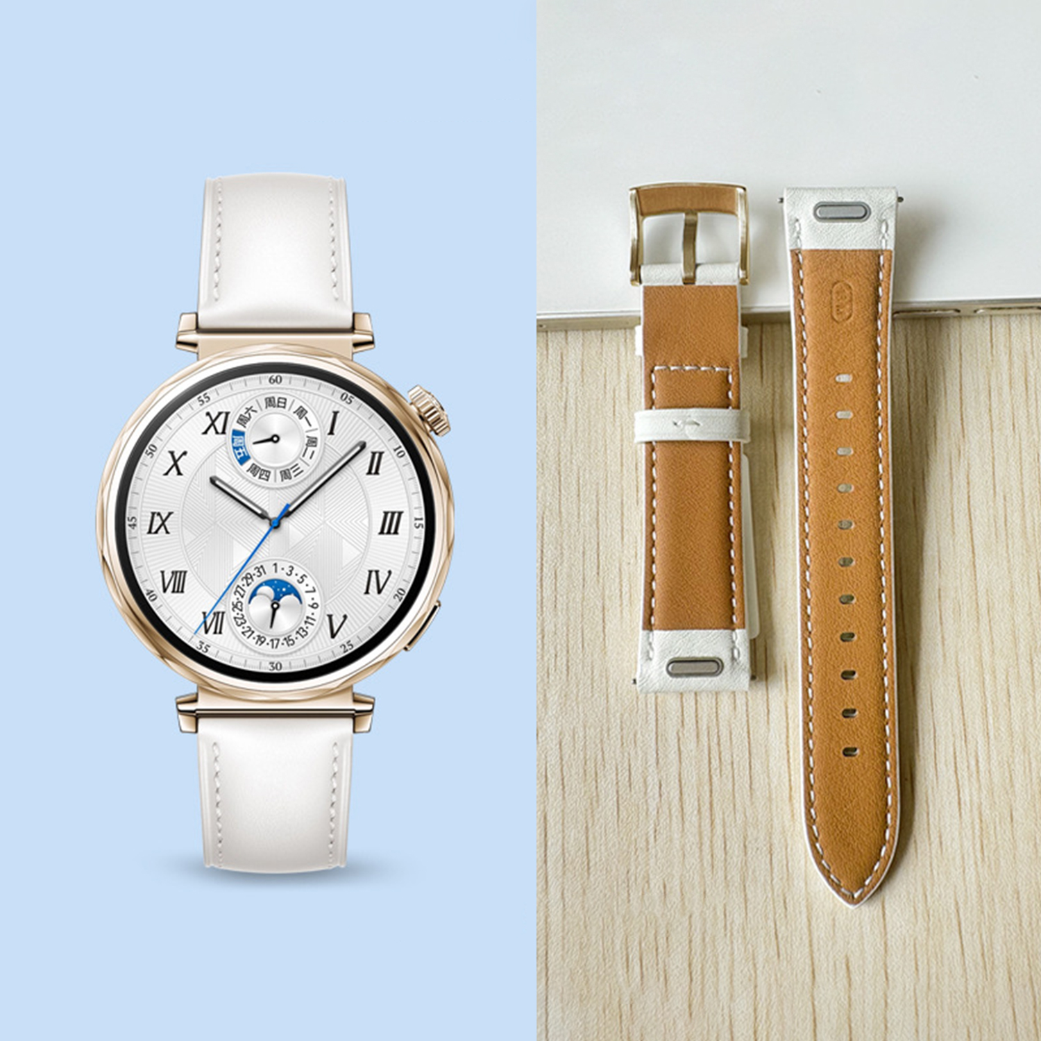 Bracelet de montre en cuir véritable pour Huawei Watch GT5 - 18 mm White + Gold