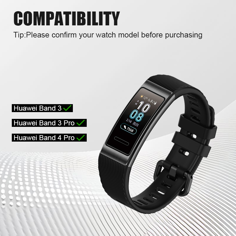 Bracelet sportif : Le bracelet de montre s'adapte au bracelet d'activité Huawei Band 3, 3 Pro et 4 Pro et est facile à changer.