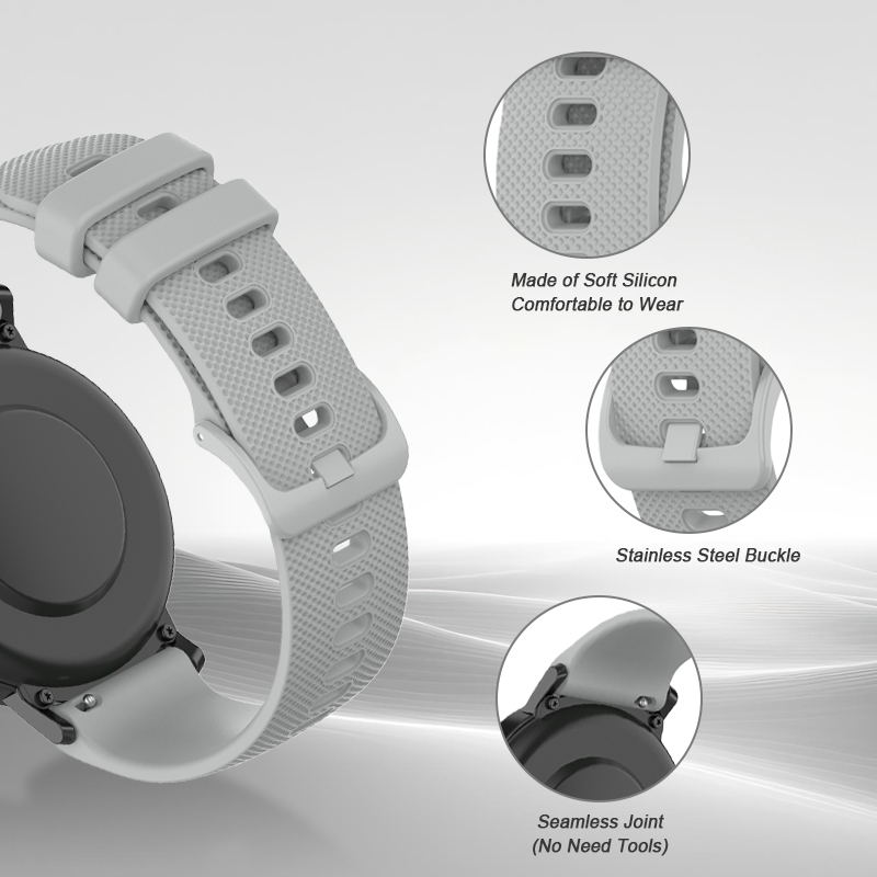 Bracelet de montre silicone Garmin Venu 2S, Garmin Vivomove 3S Grey 18 mm