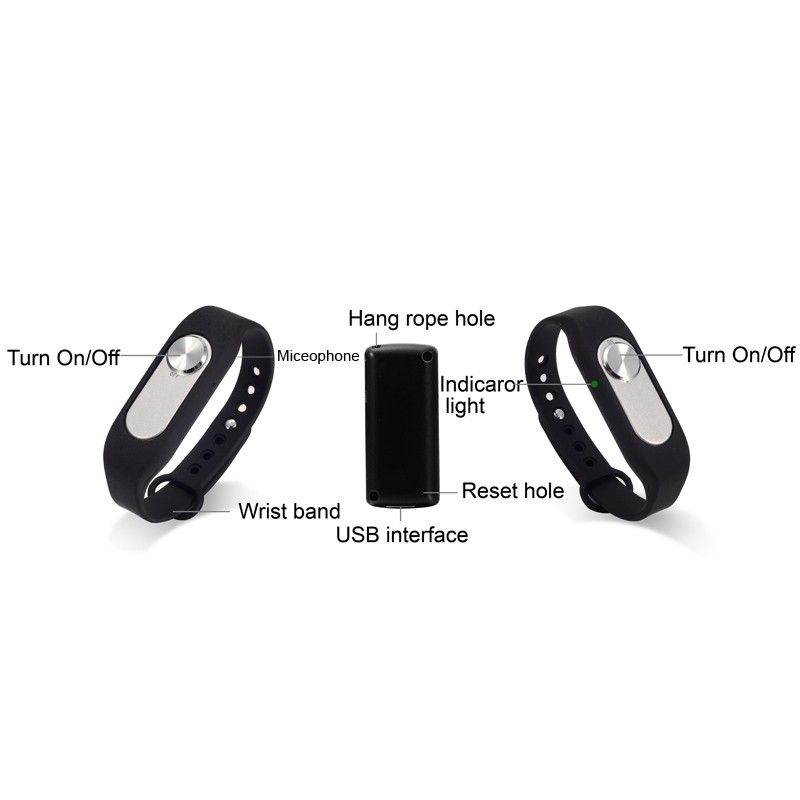 Bracelet Dictaphone Enregistrement Audio 4Go Boîtier Amovible USB Silicone Noir YONIS