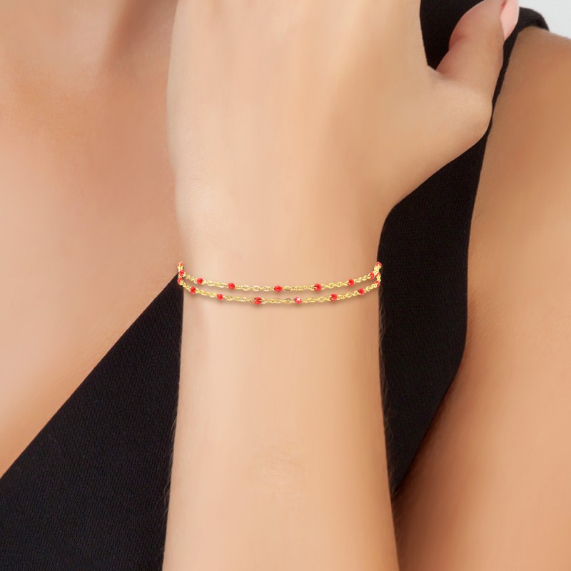 | Libellé | Bracelet double tour et perles rouges par SC Bohème |