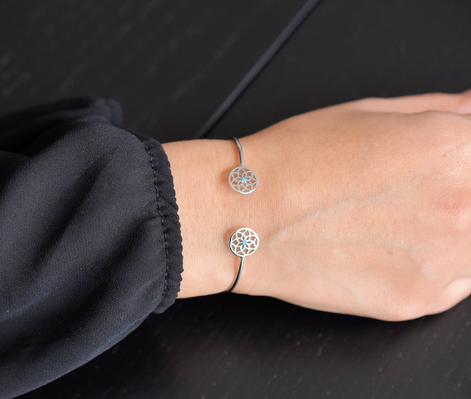 Ajoutez une touche de mystère et de style bohème à votre poignet avec notre bracelet jonc attrape-rêve en argent 925 rhodié. Ce bracelet jonc est le choix parfait pour les amateurs de bijoux uniques et significatifs.