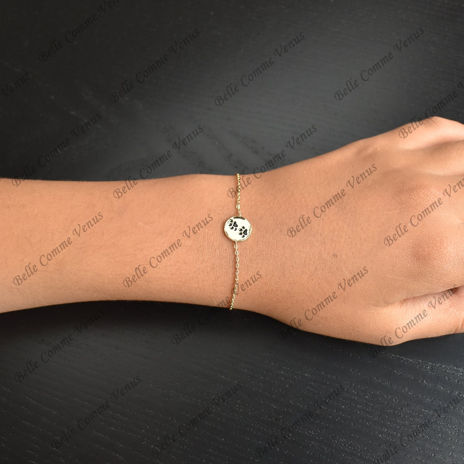Bracelet patte de chien chat coussinet émail coloré Plaqué or 750 3 microns