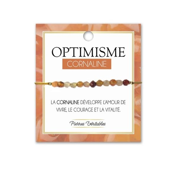 Choisissez ce joli bracelet fait en pierres de Cornaline pour agrémenter votre poignet. C'est un bijou pour femme, fin et léger. Il dispose d'une longueur réglable. Il serait parfait pour décupler le courage.* Taille : réglable (24 cm max) * Bracelet femme * Pierre naturelle véritable : Coraline * Couleur : ambrée Fonctions : bracelet Contenu : 1 bracelet optimisme