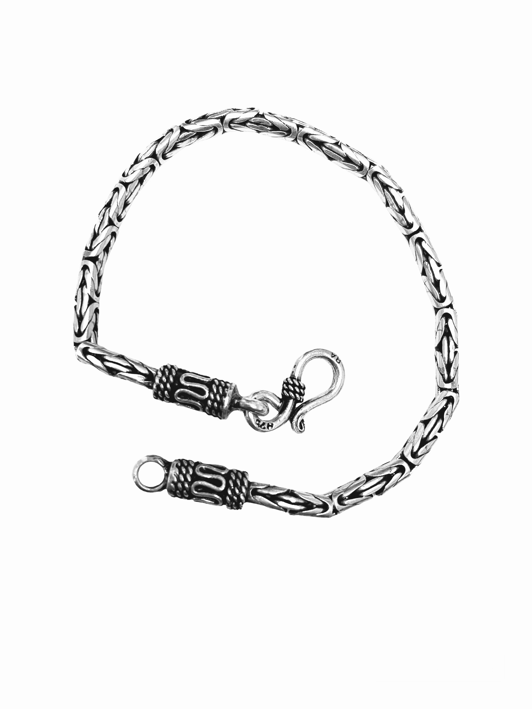 Bracelet en argent massif ethnique de bali, maille souple de style byzantine, pour homme ou pour femme. Très beau Bracelet en argent massif style balinais, maille chaîne Byzantine. Bracelet souple. Fermoir crochet. Longueur : 20.5cm - Largeur : 0,4cm - Poids : 15gr.