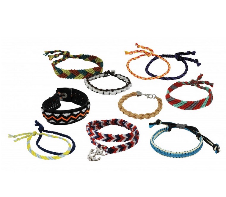 Nombreux accessoires : fil de coton, corde cirée, perles, breloques ou encore bracelet en simili cuir.