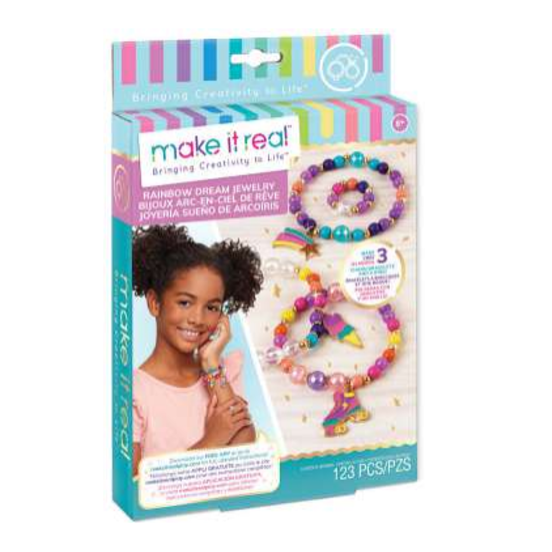 Make It Real : fais vivre ta créativité ! Crée tes propres bracelets comme un véritable bijoutier avec ce kit de perles colorées. Mélange et associe les perles colorées et dorées pour créer des bracelets tendances et sophistiqués, ajoute ensuite un charms de ton choix pour plus de fun ! Tu pourras réaliser 3 bracelets uniques avec l’aide de ton plateau de création. Dès 8 ans