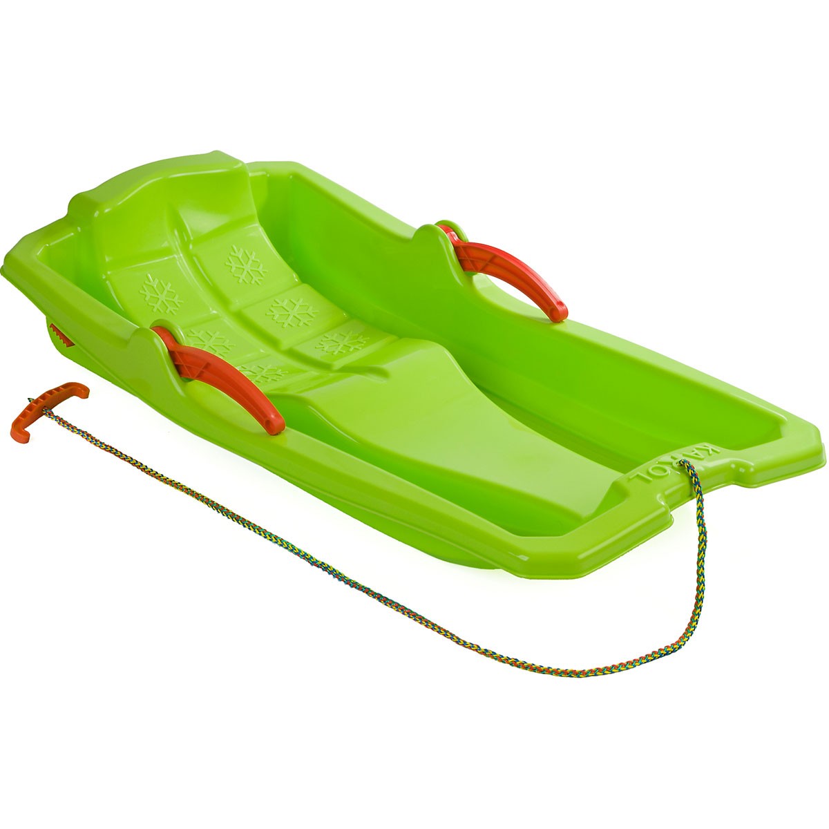 Cette luge convient aux enfants à partir de 3 ans. Légère, elle est équipée de freins à actionner avec les mains, ils permettent également de diriger la luge lors de la descente.