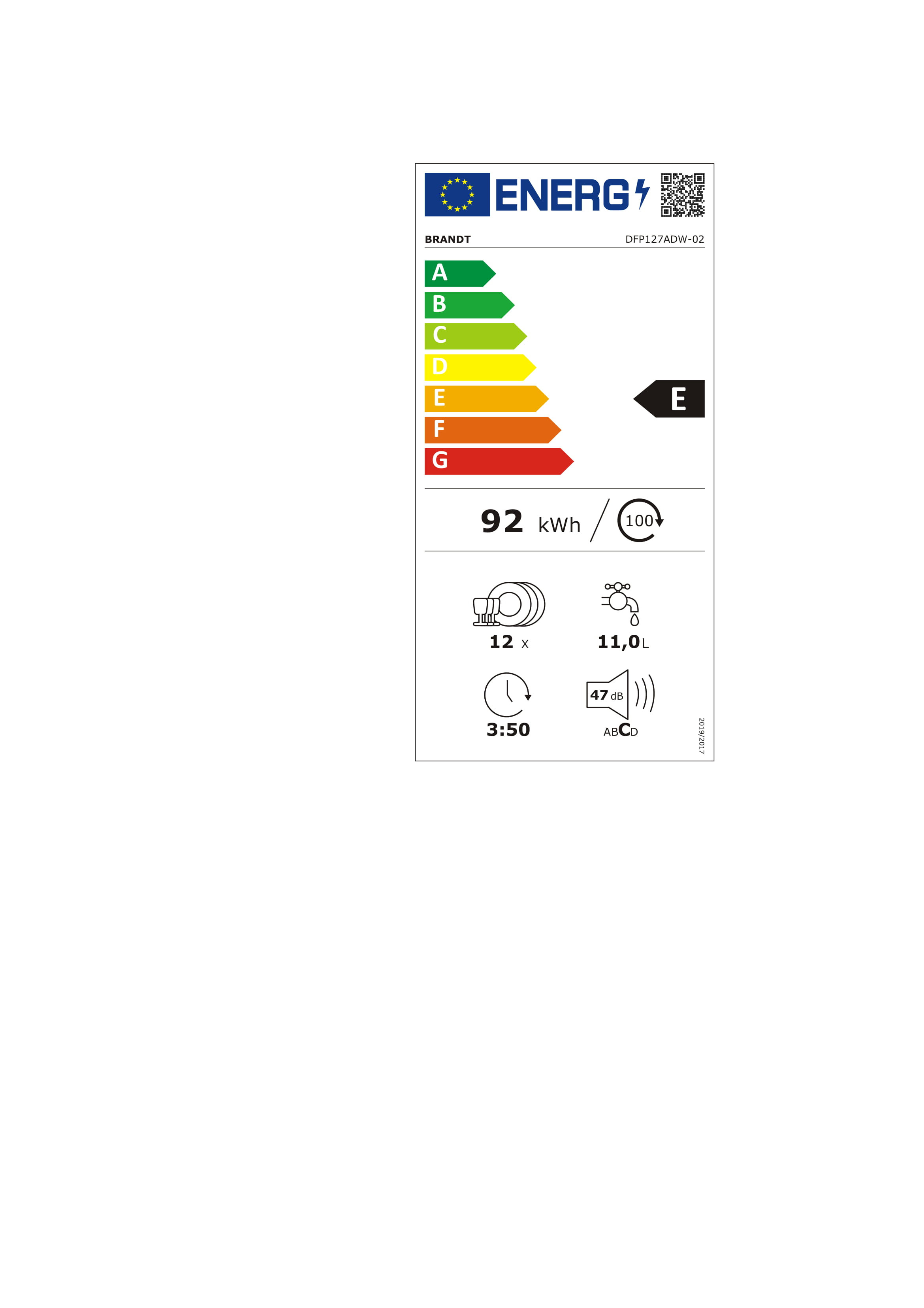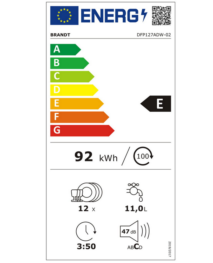| Libellé | Brandt DFP127ADW lave-vaisselle Pose libre 12 couverts E |
