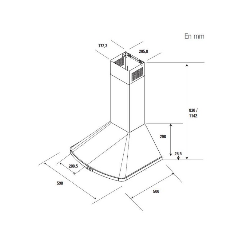 | Libellé | BRANDT Hotte Décorative pyramidale aspirante inox Largeur 60cm Débit d'air 603m3/h |