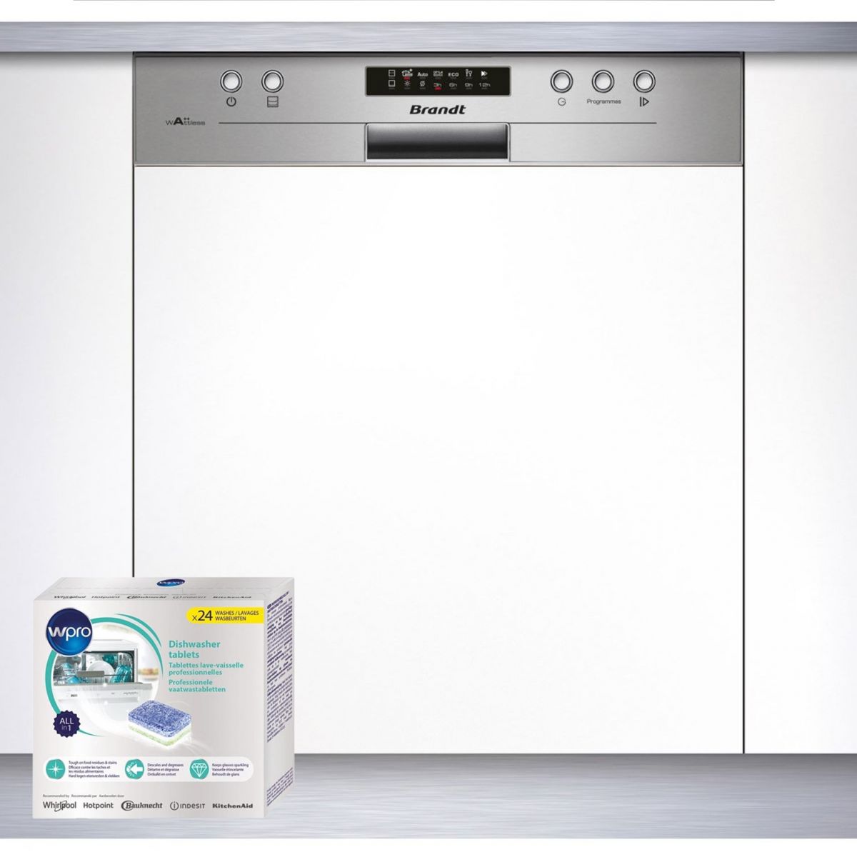 | Libellé | BRANDT Lave-vaisselle Intégrable encastrable bandeau inox 47dB 12 couverts 60cm Départ Différé |