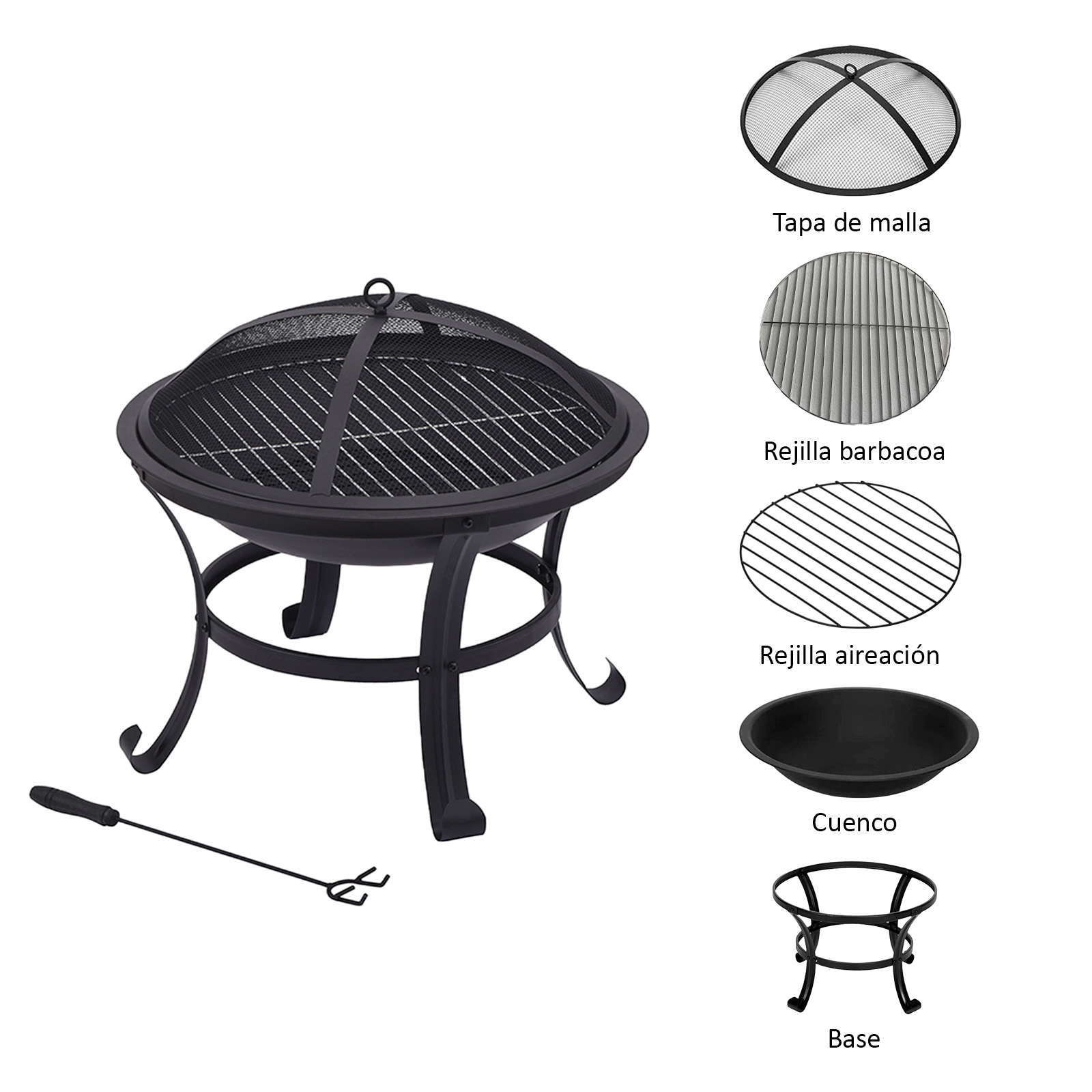 | Libellé | Brasero Bol à Feu Usage Extérieur en Fer 2 en 1 Kekai Fogo 40x56 cm Grill Barbecue | Pare-Étincelles | Tisonnier |
