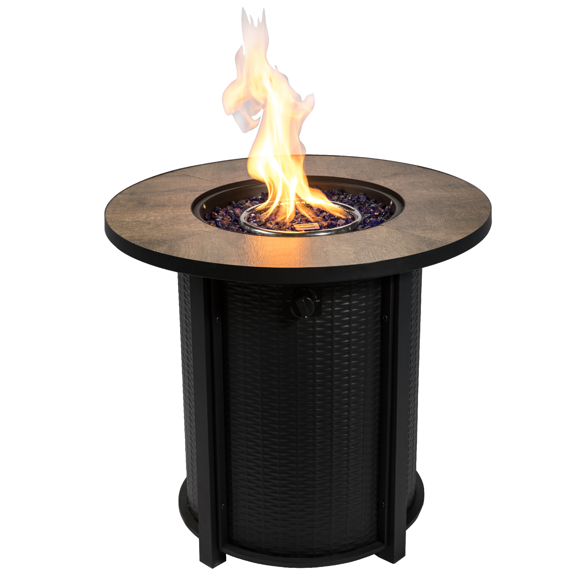 - BRASERO A GAZ 2 EN 1 DE 76 CM : Profitez de la chaleur et de l’ambiance de ce braséro à gaz à la fois contemporain et élégant. Le braséro peut se convertir en une table extérieure ou bar décontracté lorsqu’il n’est pas utilisé grâce au couvercle fourni. Epaisseur du plateau : 2.8 cm. Les flammes sont réglables vous permettent d'intensifier la chaleur et, l'allumage piézo-électronique à démarrage rapide vous permet d'allumer facilement ce foyer en quelques secondes afin de créer l’ambiance idéale dans votre jardin. Nécessite 1x pile AAA pour l'allumage (pile incluse). Une bouteille de gaz de 9 kg durera environ 11.5 heures à une combustion continue à la puissance maximale.