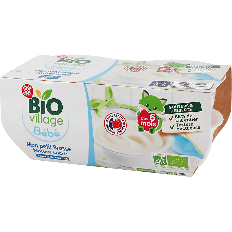 Aliment pour bébés : Dessert lacté nature sucré - Produit issu de l'agriculture biologique BIO VILLAGE