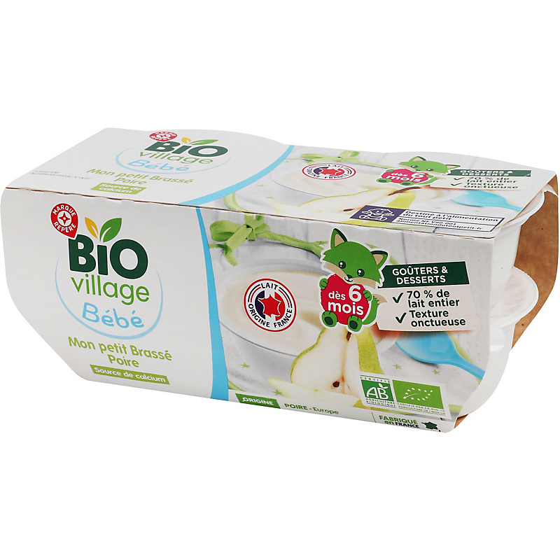Aliment pour bébés : Dessert lacté à la poire - Produit issu de l'agriculture biologique BIO VILLAGE