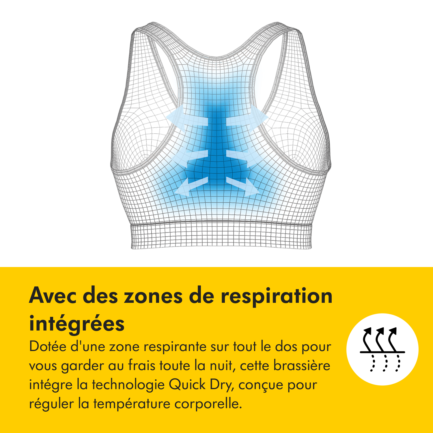 La brassière de nuit Keep Cool™ de Medela est dotée d’une zone de respiration à dos nageur pour des nuits plus fraîches et un sommeil réparateur et confortable. Nouvelle technologie de séchage rapide pour vous aider à équilibrer la température de votre corps tout en vous assurant soutien et confort. Notre technologie Adaptive Stretch™ dans 4 directions permettra à votre soutien-gorge de s’étendre de pair avec votre corps, de la grossesse à l’allaitement, en vous maintenant au frais et au sec tout au long de votre voyage, malgré les fluctuations de votre température corporelle, tout en vous assurant, la nuit, soutien et confort.