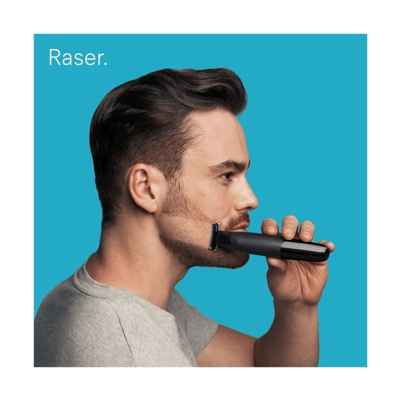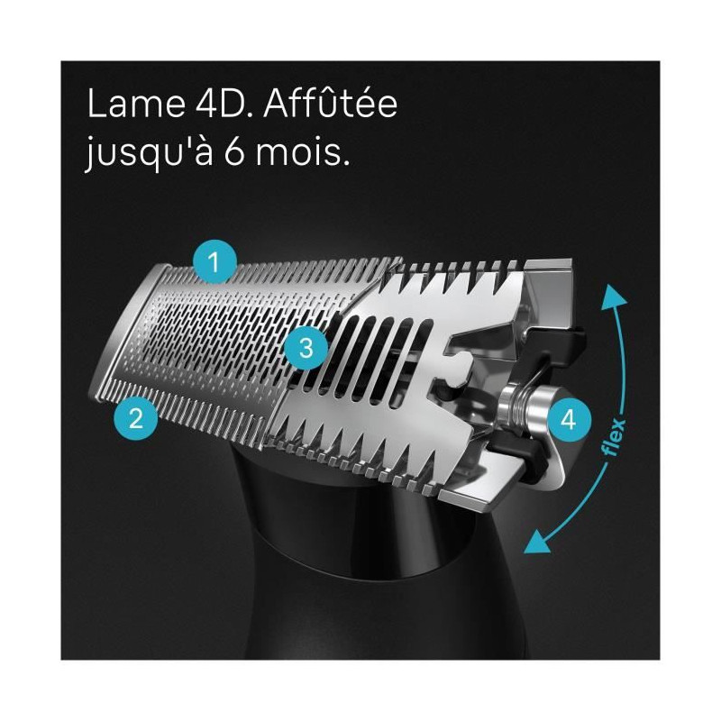 Rasez, stylisez et tondez avec un seul outil: tondeuse à barbe et rasoir électrique pour homme. Pour le visage, avec des sabots de 1, 3, 5 mm. Rapide et efficace: la lame 4D offre une surface de coupe 2 fois plus large et effectue 450 mouvements par seconde, pour un rasage rapide. La lame en acier inoxydable reste affûtée jusqu’à 6 mois. Simple et confortable: obtenez facilement des résultats exceptionnels et des lignes précises, même dans les zones difficiles, grâce à la tête flexible pivotante et au peigne bidirectionnel qui coupe dans toutes les directions. Doux pour la peau: le sabot SkinGuard et la grille de protection protègent votre peau de la lame, même dans les zones sensibles. Conçue pour durer: 100 % étanche avec un manche antidérapant en caoutchouc et 45 minutes d’autonomie. Avec petit sac à cordon pour le rangement.