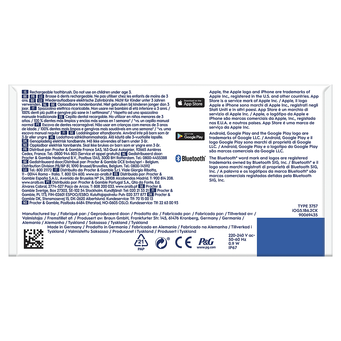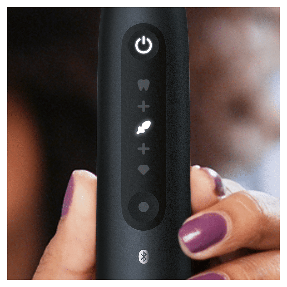 La brosse à dents électrique iO 5 est dotée de la meilleure technologie Oral-B, combinant une brossette ronde d'inspiration professionnelle avec des brins à micro-vibrations pour une sensation de propreté purifiante professionnelle à la maison. Le capteur de pression Smart vous aide à éviter un brossage trop fort ou trop doux pour mieux protéger vos gencives. La reconnaissance de brossage I.A. reconnaît votre style de brossage et vous guide au quotidien vers un meilleur brossage. Se connecte à l'application Oral-B gratuite pour un suivi et des conseils en temps réel sur 6 zones de brossage. Pour un résultat optimal, remplacez la brossette Oral-B iO tous les 3 mois.