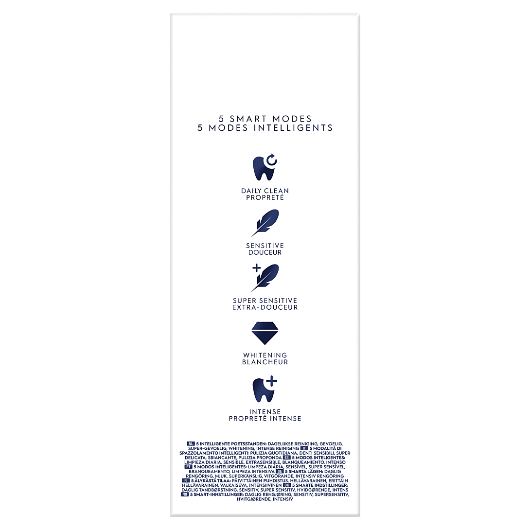 | Mode(s) de brossage | Soin quotidien;Nettoyage en profondeur;Sensible;Super sensitive;Blanchiment |