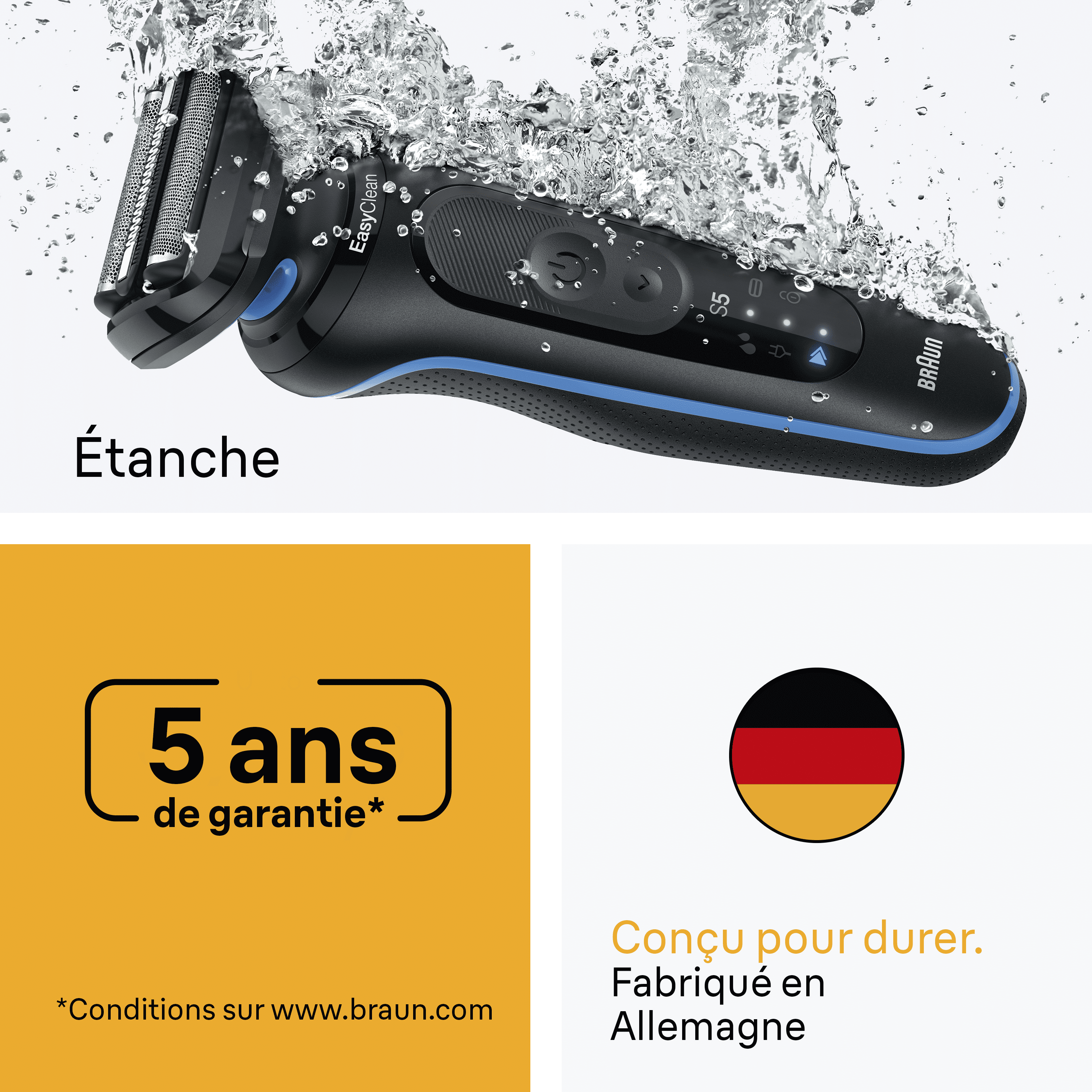 | Libellé | Braun Series 5 52-B1000s Rasoir à grille Noir |