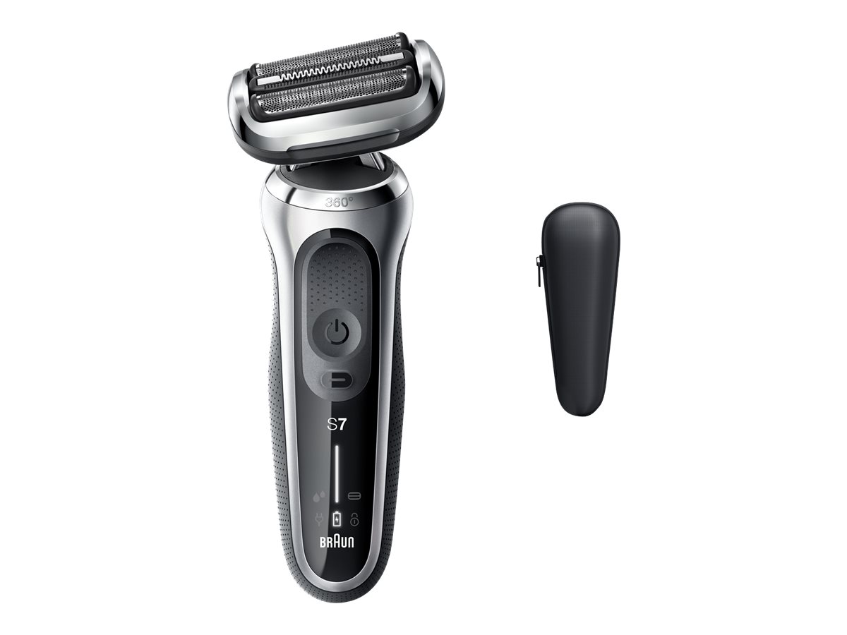 Rasoir électrique homme Braun Series 7 avec adaptation à 360° pour un rasage doux. La technologie auto-senseur analyse et s’adapte à votre barbe, pour éliminer plus de poils à chaque passage. La batterie Li-Ion offre jusqu’à 3 semaines de rasage et une charge rapide en 5 minutes. Ce rasoir électrique barbe est 100 % étanche, pour une utilisation Wet & Dry. Compatible avec le système EasyClick. La boîte inclut : 1 rasoir électrique pour homme Series 7 - Argent 1 Étui de voyage 1 prise intelligente pour un ajustement automatique aux tensions de 100 à 240 V 1 brosse de nettoyage