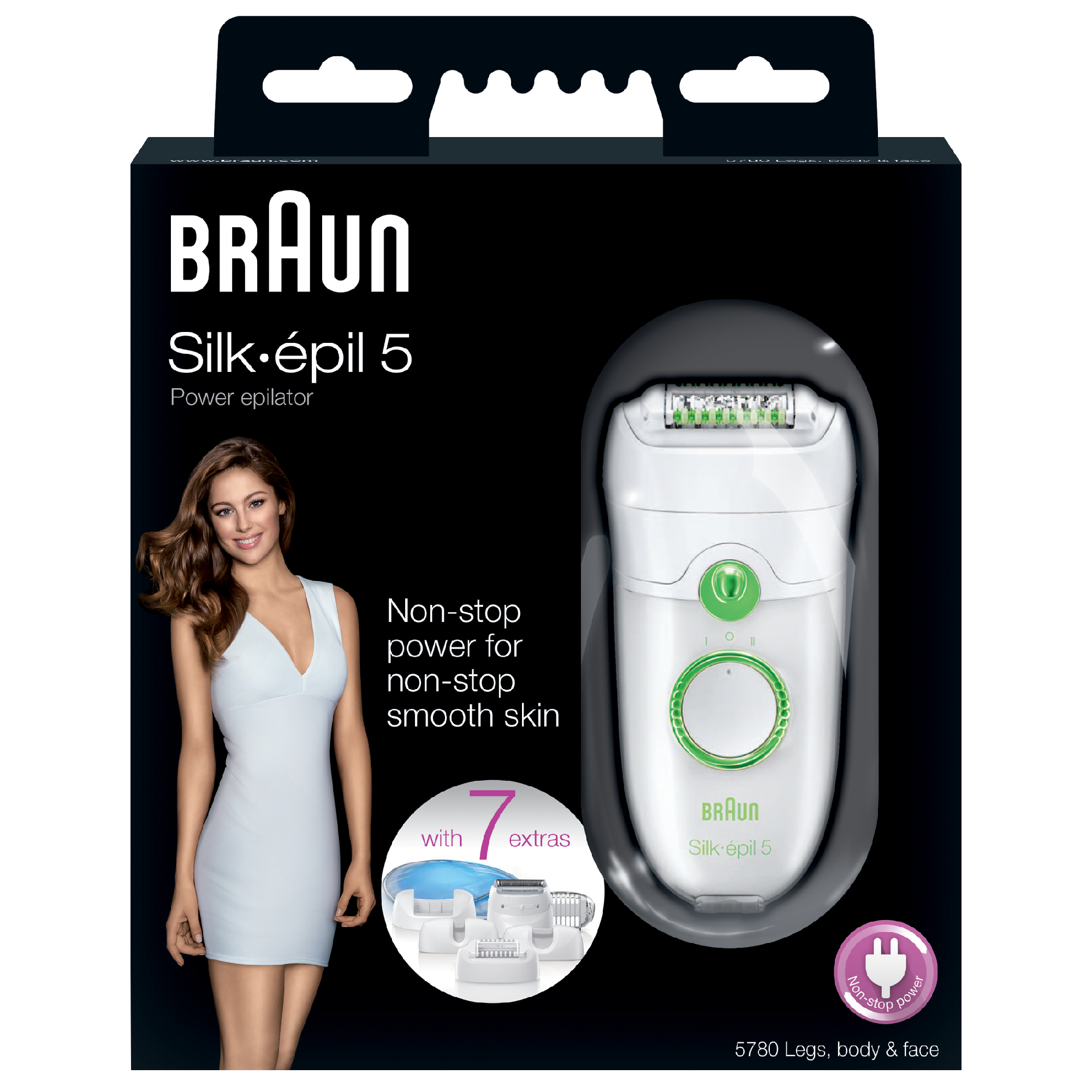 Le Silk-épil 5 5780 contient également un 5 accessoires, dont une tête de rasage, un accessoire tondeuse, un accessoire efficacité, un accessoire zones sensibles, spécialement conçu pour vous donner des résultats optimaux sur les différentes parties du corps