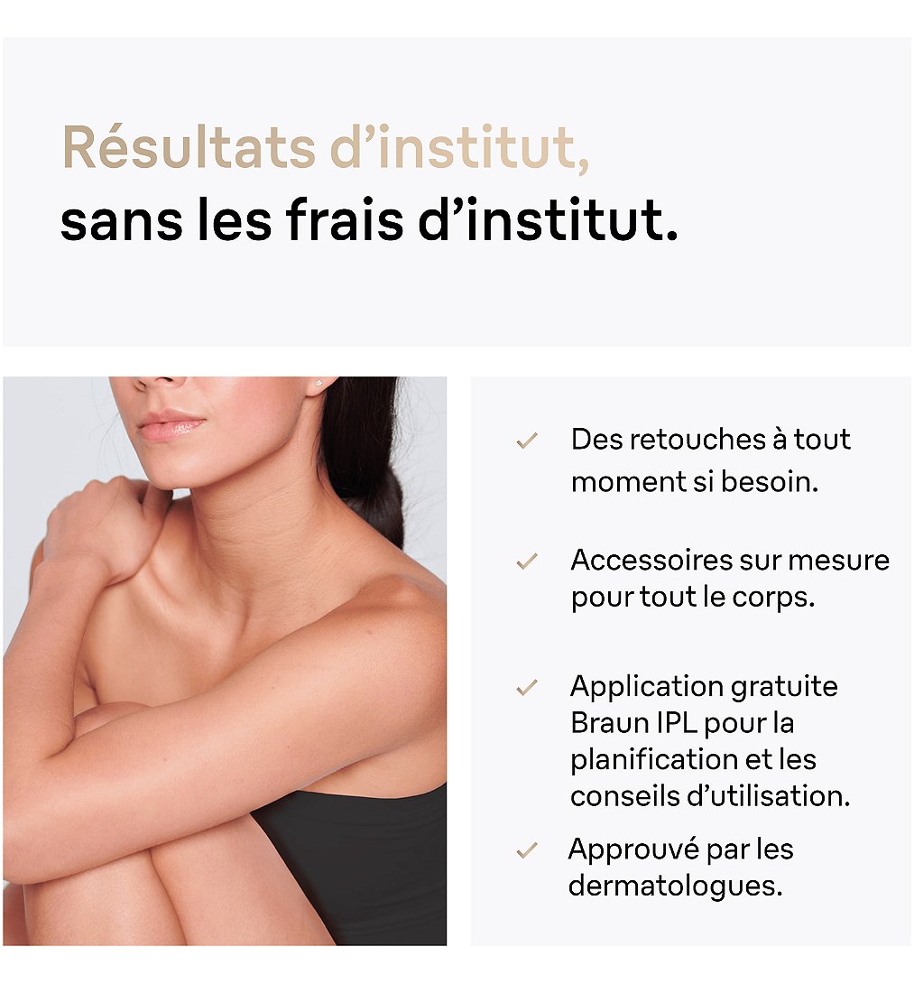 Le Silk·expert Pro 5 de Braun est un épilateur à lumière pulsée (IPL), une alternative à l'épilation au laser. Sa technologie de lumière pulsée avancée offre 2 ans de peau douce, avec des résultats visibles en seulement 2 séances (en suivant le traitement. Les résultats peuvent varier selon les personnes). Cet appareil ajuste automatiquement et en continu chaque flash aux variations de votre teint de peau, grâce à sa technologie SkinProtect. Approuvé par les dermatologues de la Skin Health Alliance. Jusqu'à 125 flashs par minute pour moins de petites zones manquées lors du passage de l'appareil.