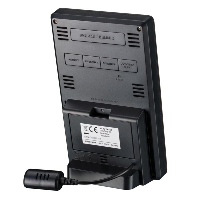 La station météo ClimaTemp WS est alimentée par un adaptateur secteur. Pour une protection contre les pannes de courant, il est possible d'insérer des piles.