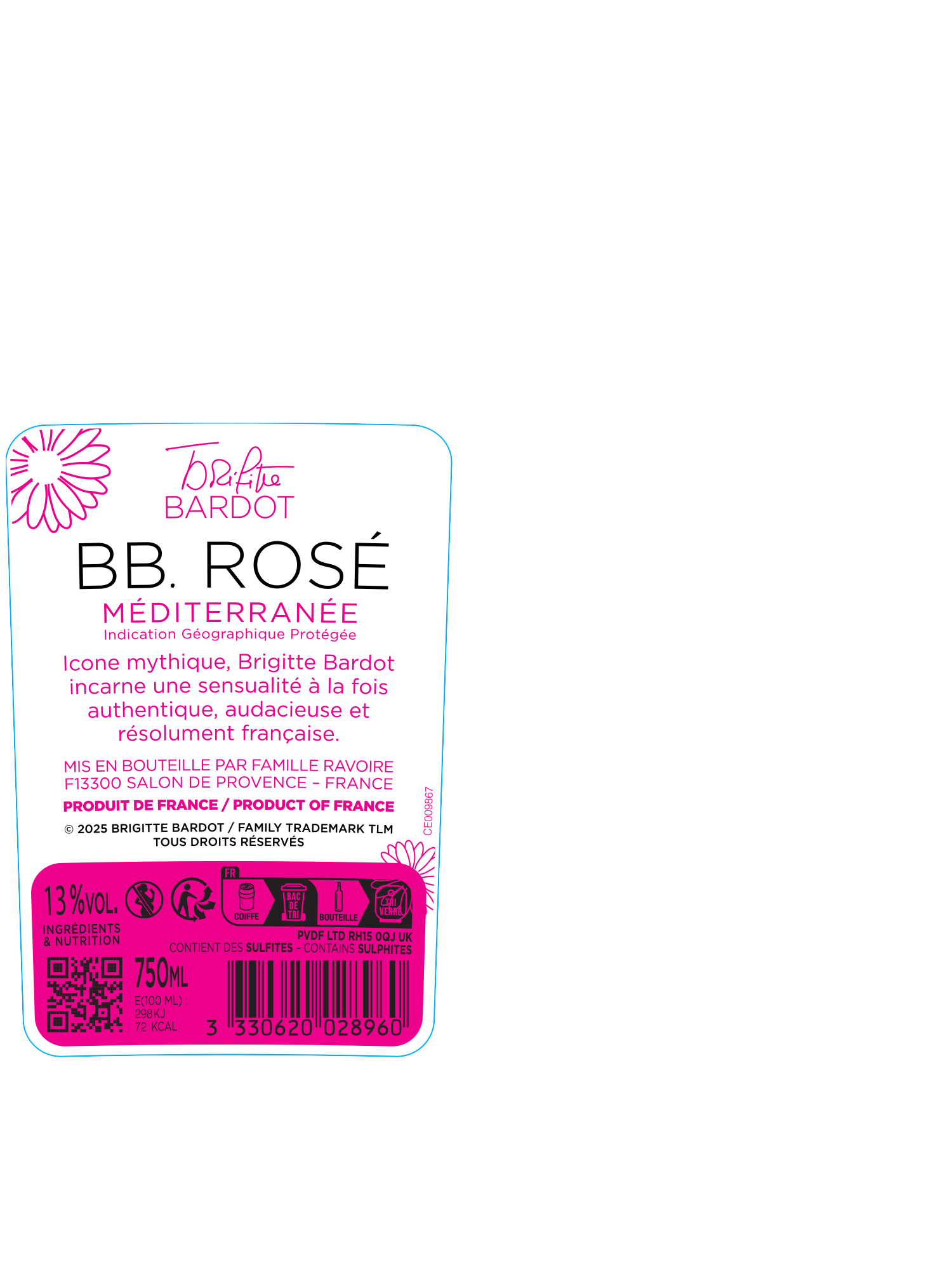 Libellé Brigitte Bardot BB Rosé, 2025 - Méditerranée IGP - Rosé - 75 cl