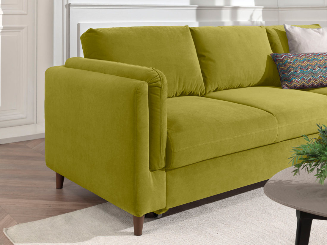 | Plus produit | [Canapé Convertible] Brooke - canapé d'angle droit - convertible avec coffre - 4 places - en velours combine design moderne et fonctionnalité lit intégré pour vos invités. [Couchage Quotidien] Mécanisme fluide et matelas confortable pour un usage régulier en lit 2 places. [Rangement Pratique] Coffre intégré pour stocker couette, coussins ou linge de lit facilement. [Assise Confortable] Rembourrage moelleux avec soutien ergonomique pour détente optimale. [Montage Facile] Livré en modules avec notice claire, montage rapide sans outil spécialisé. |