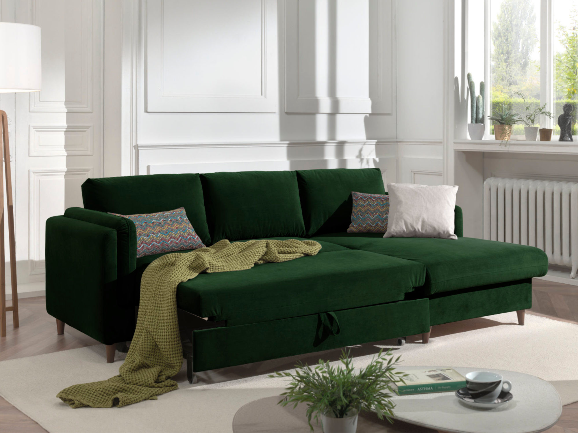 | Libellé | Brooke - canapé d'angle droit - convertible avec coffre - 4 places - en velours |