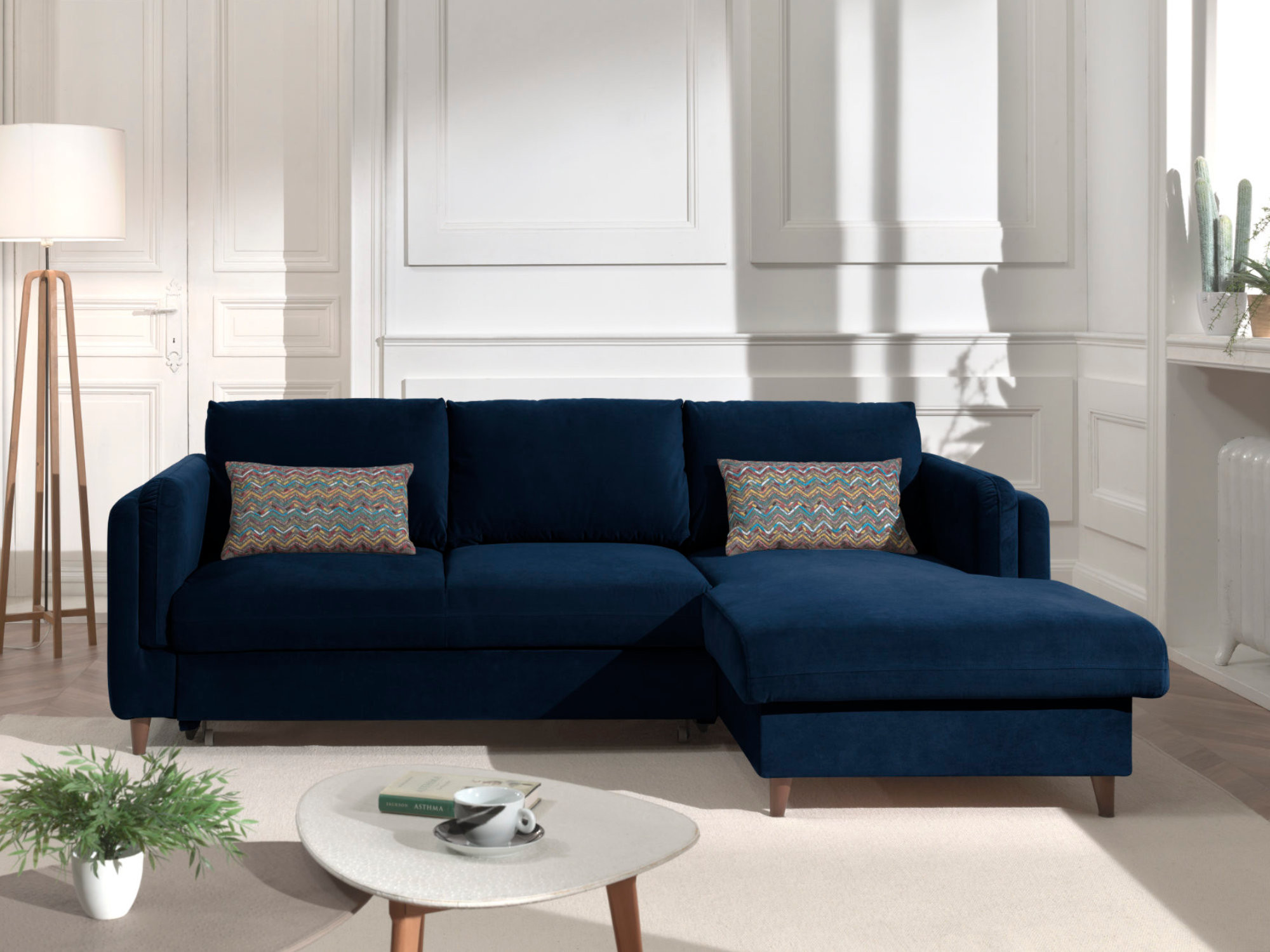 | Libellé | Brooke - canapé d'angle droit - convertible avec coffre - 4 places - en velours |