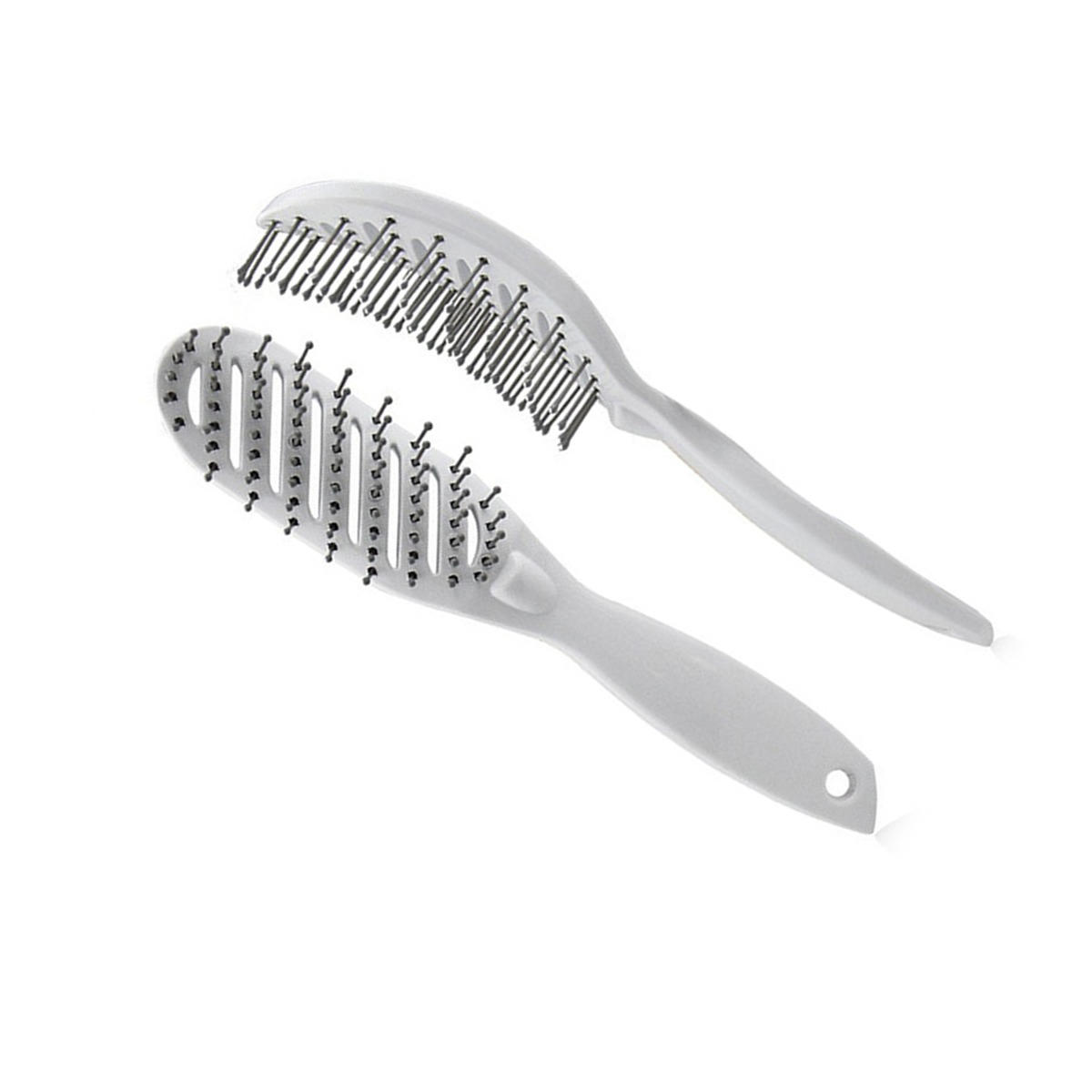 Brosse à Cheveux Aérée Courbée Blanche Brillante - Antistatique et Résistante à la Chaleur