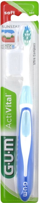GUM Brosse à Dents ACTIVITAL Brins avec micro-filaments : ils permettent un brossage en profondeur afin d'éliminer la plaque dentaire dans les endroits les plus inaccessibles, y compris la gencive interproximale (entre les dents), zone à l'origine des problèmes de gencives.