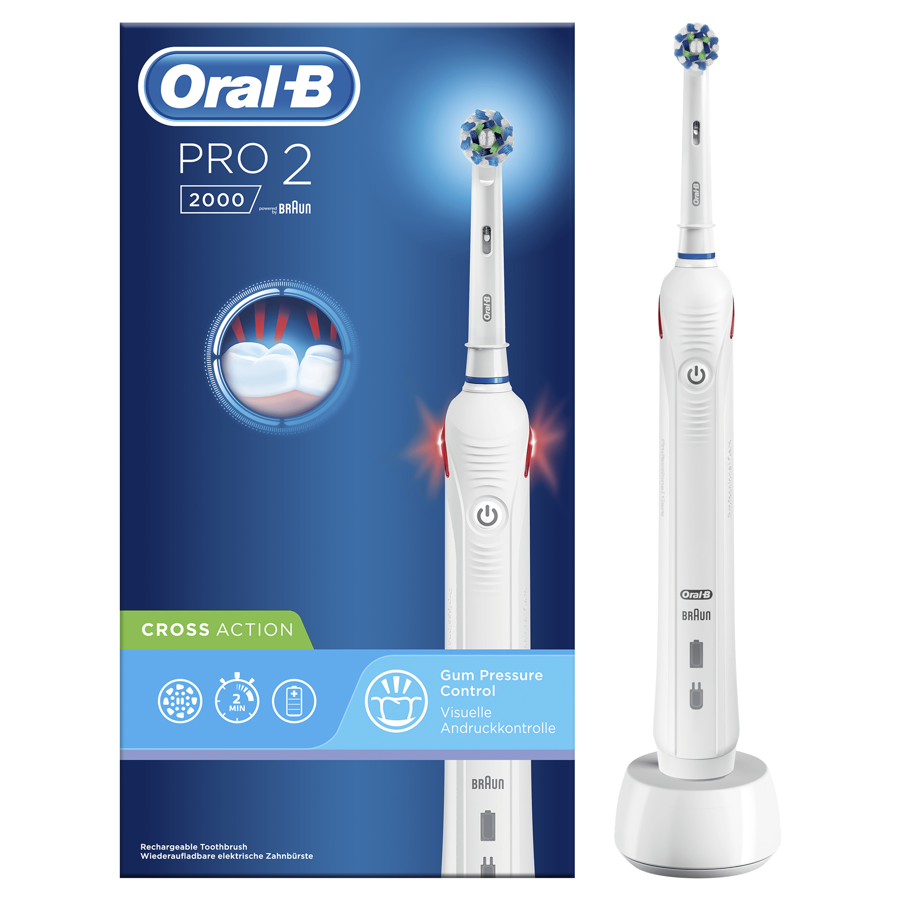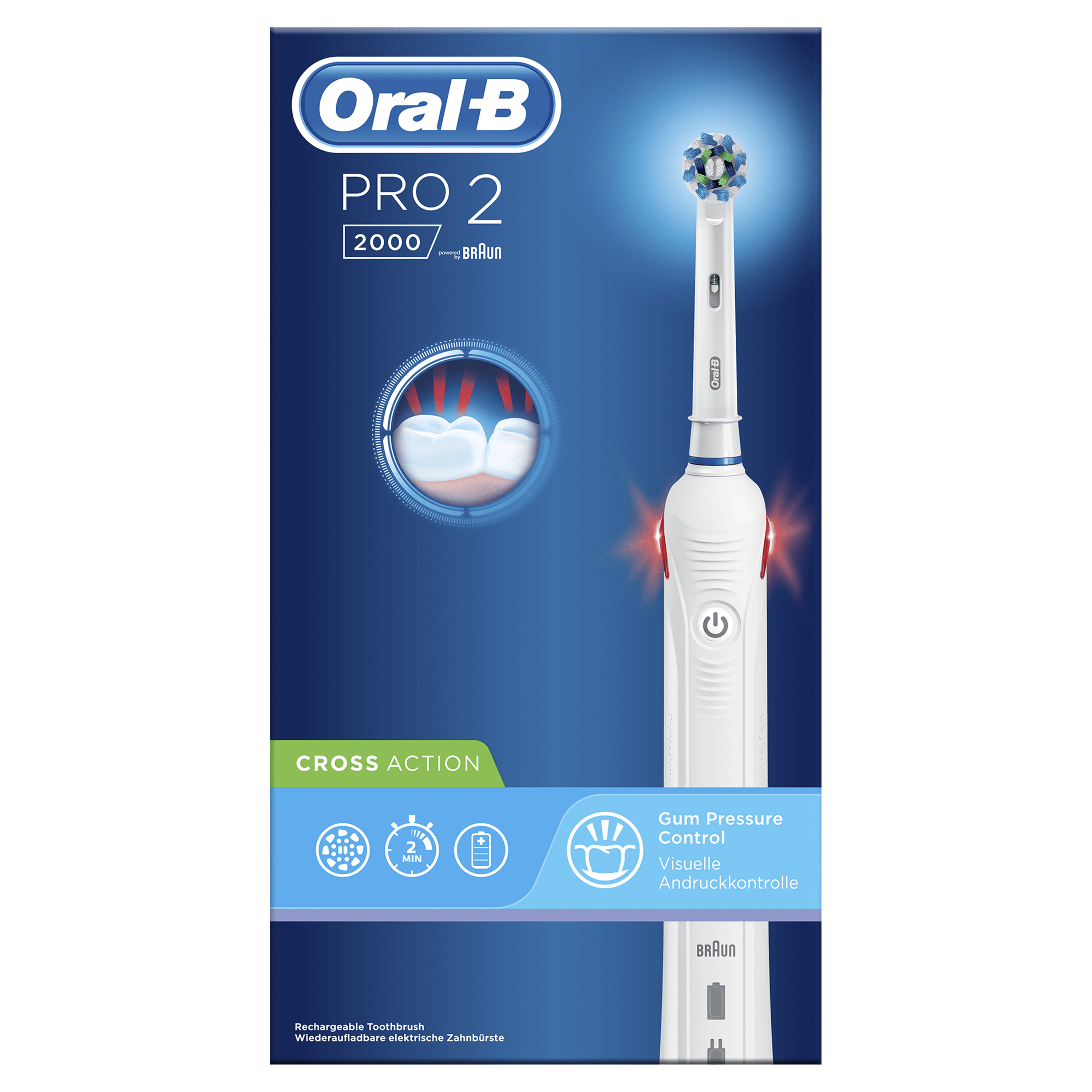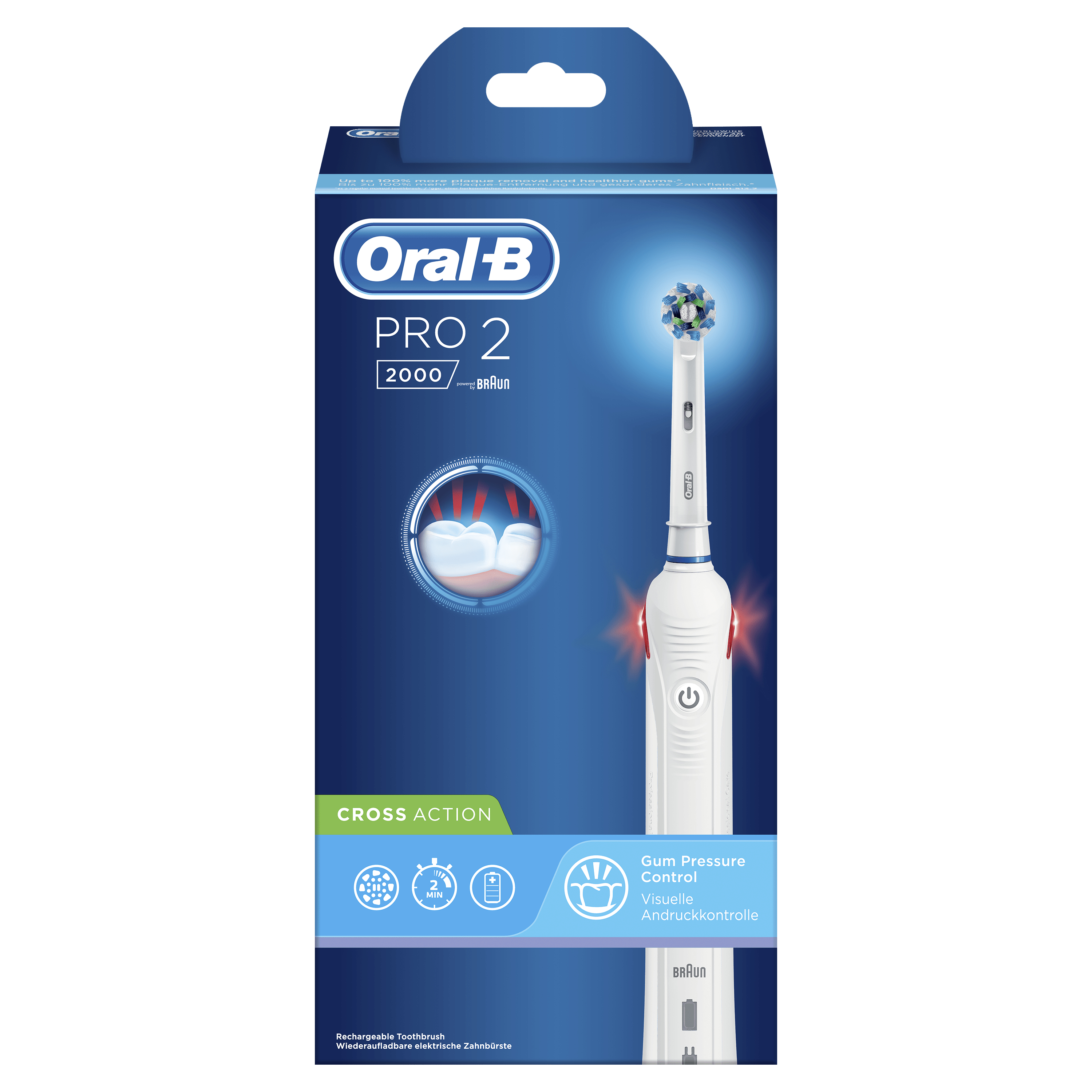 Brosse a Dents Electrique - Oral-B Pro 2 2000 - Blanche - Technologie 3D - Batterie
