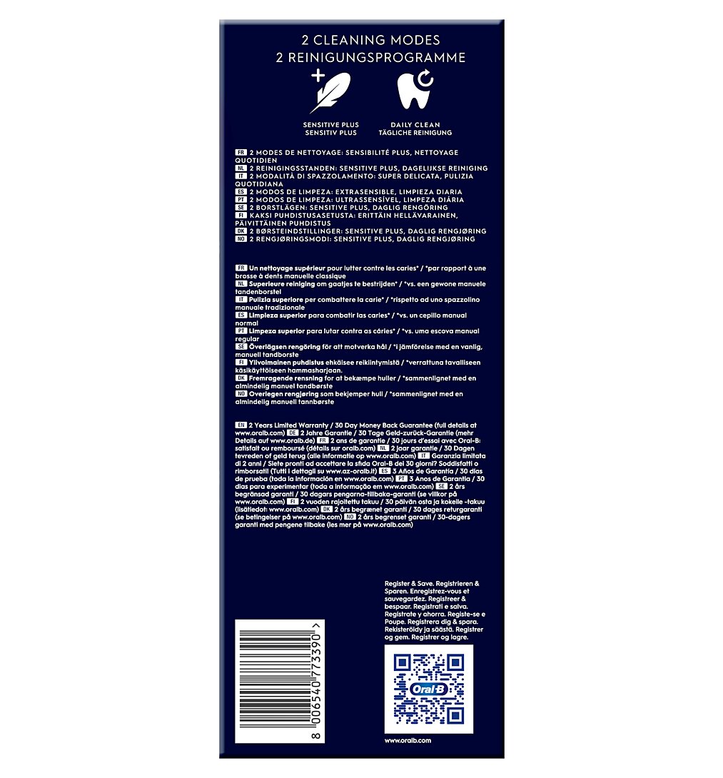 | Mode(s) de brossage | Soin quotidien;Sensible;Super sensitive |