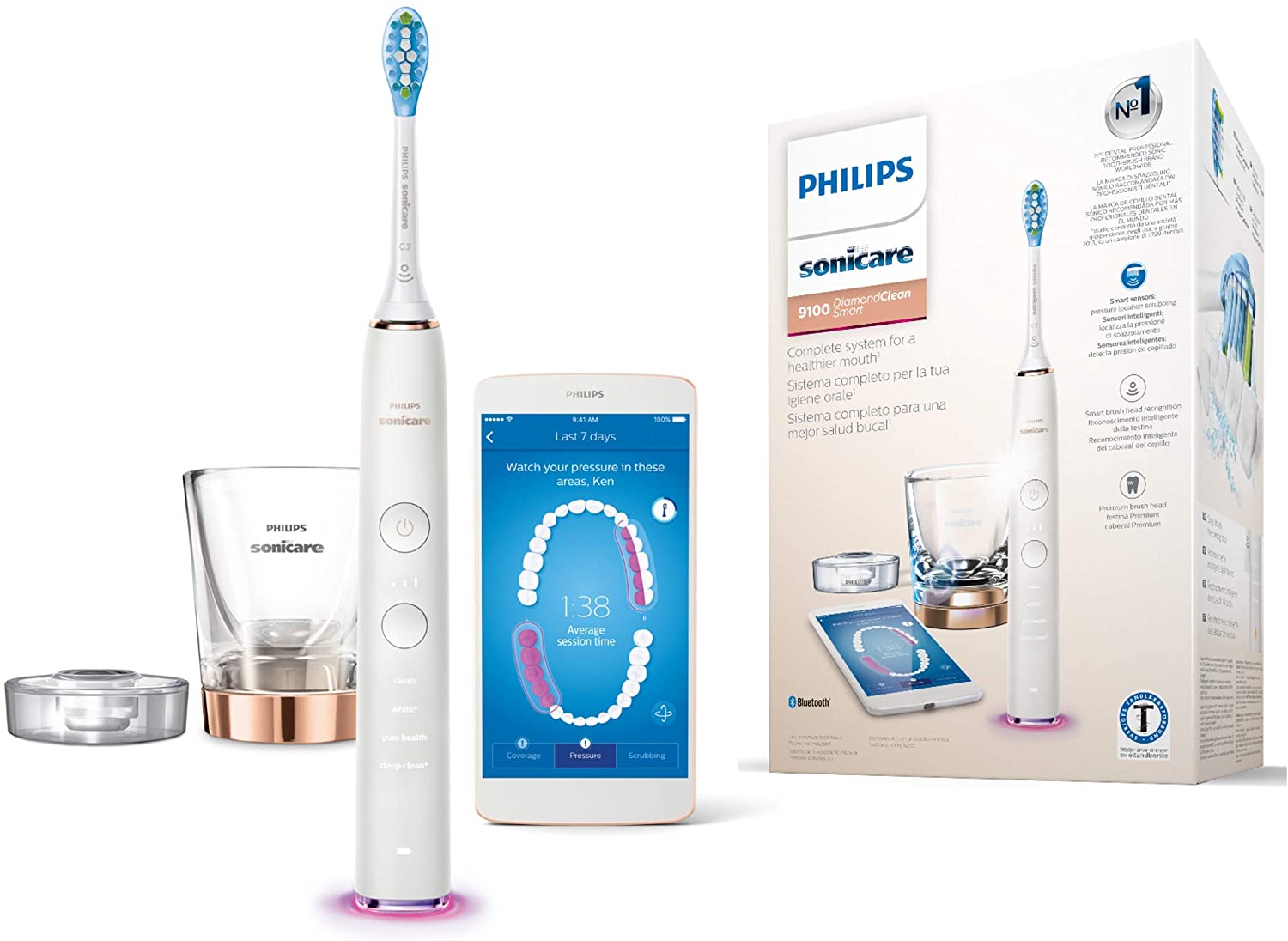 | Libellé | brosse à dents électrique rechargeable connectée Diamond Clean Smart rose or blanc |