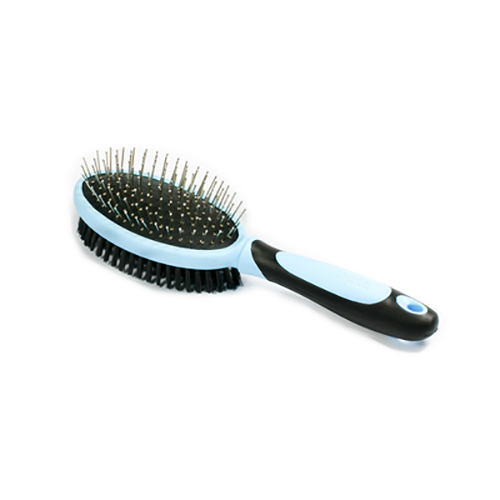 Brosse de toilettage pour chiens et chats double face de qualité professionnelle. Un coté démêle les poils en toute sécurité grâce à ses goupilles en acier, l'autre coiffe le poil en douceur. Le manche en matière anti-dérapante permet une utilisation aisée et sans fatigue .