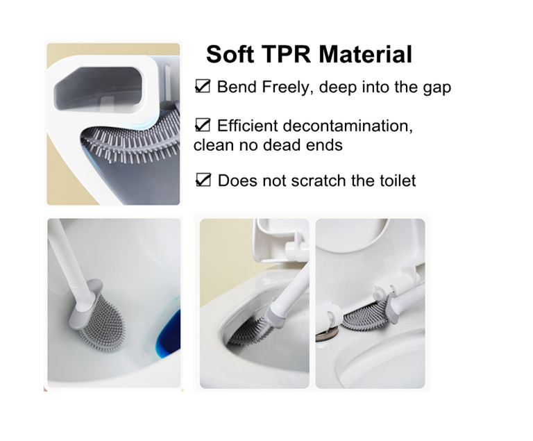 Brosse de toilette dans un tout nouveau design. Les pinceaux sont fabriqués en TPU souple et peuvent être façonnés de manière flexible pour atteindre partout. La brosse de toilette est très résistante et facile à nettoyer. Livré avec un porte-brosse pratique.