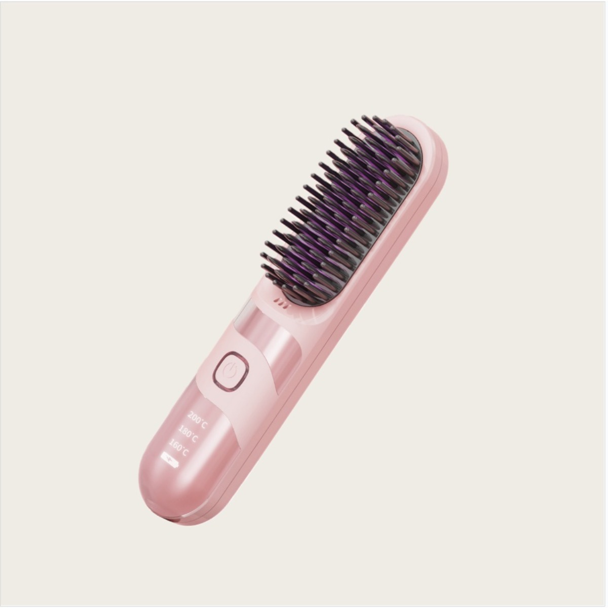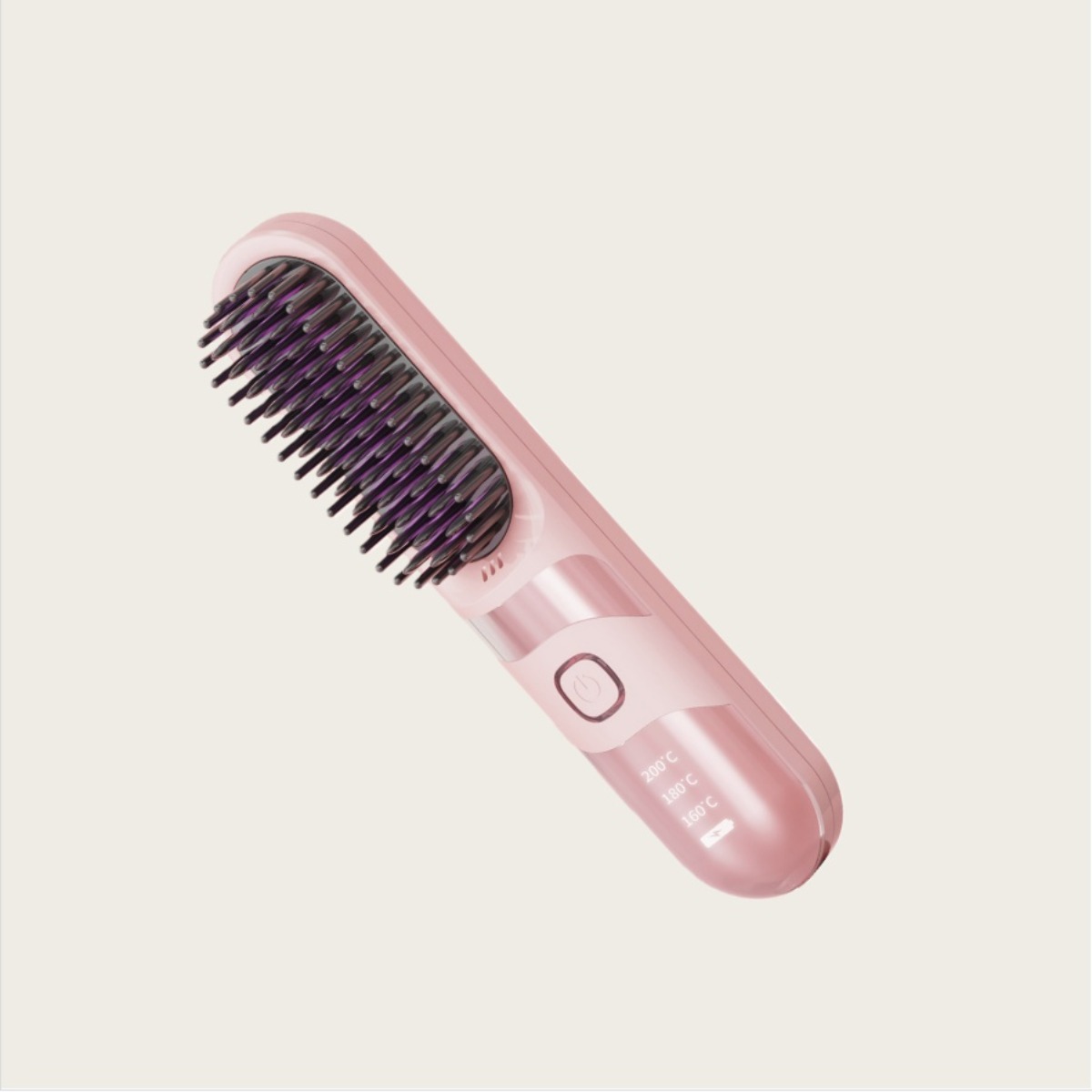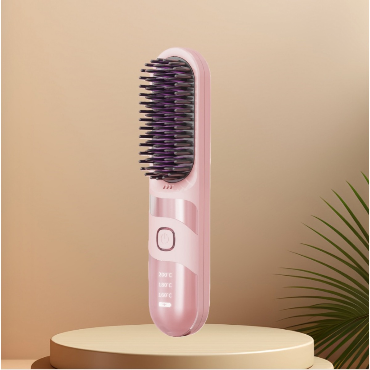Brosse Lissante Chauffante Sans Fil - Portable et Rechargeable avec Température Réglable Pink