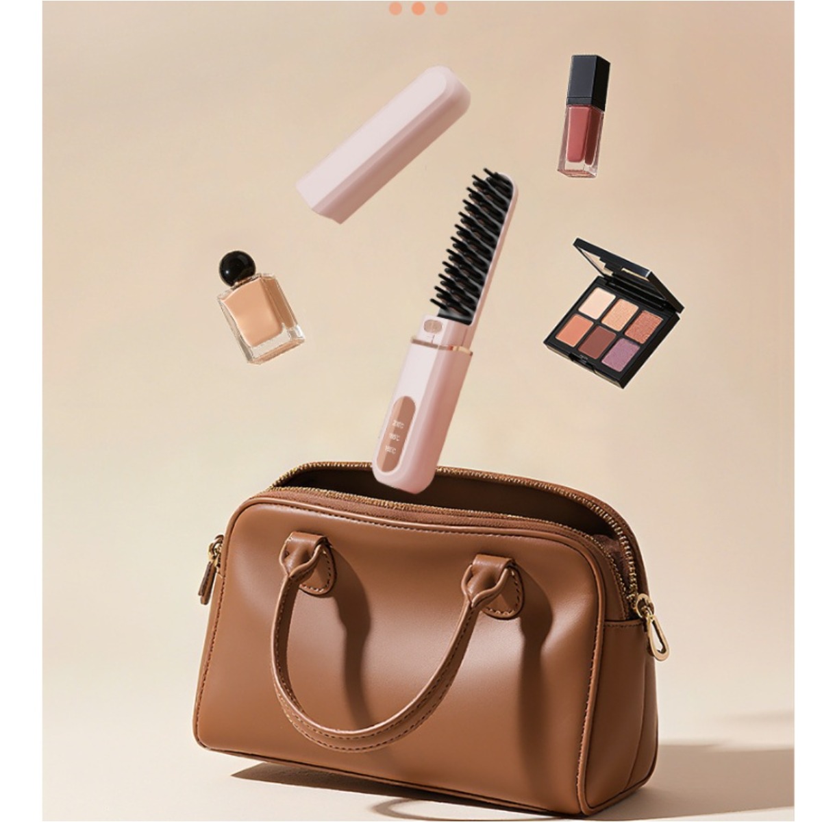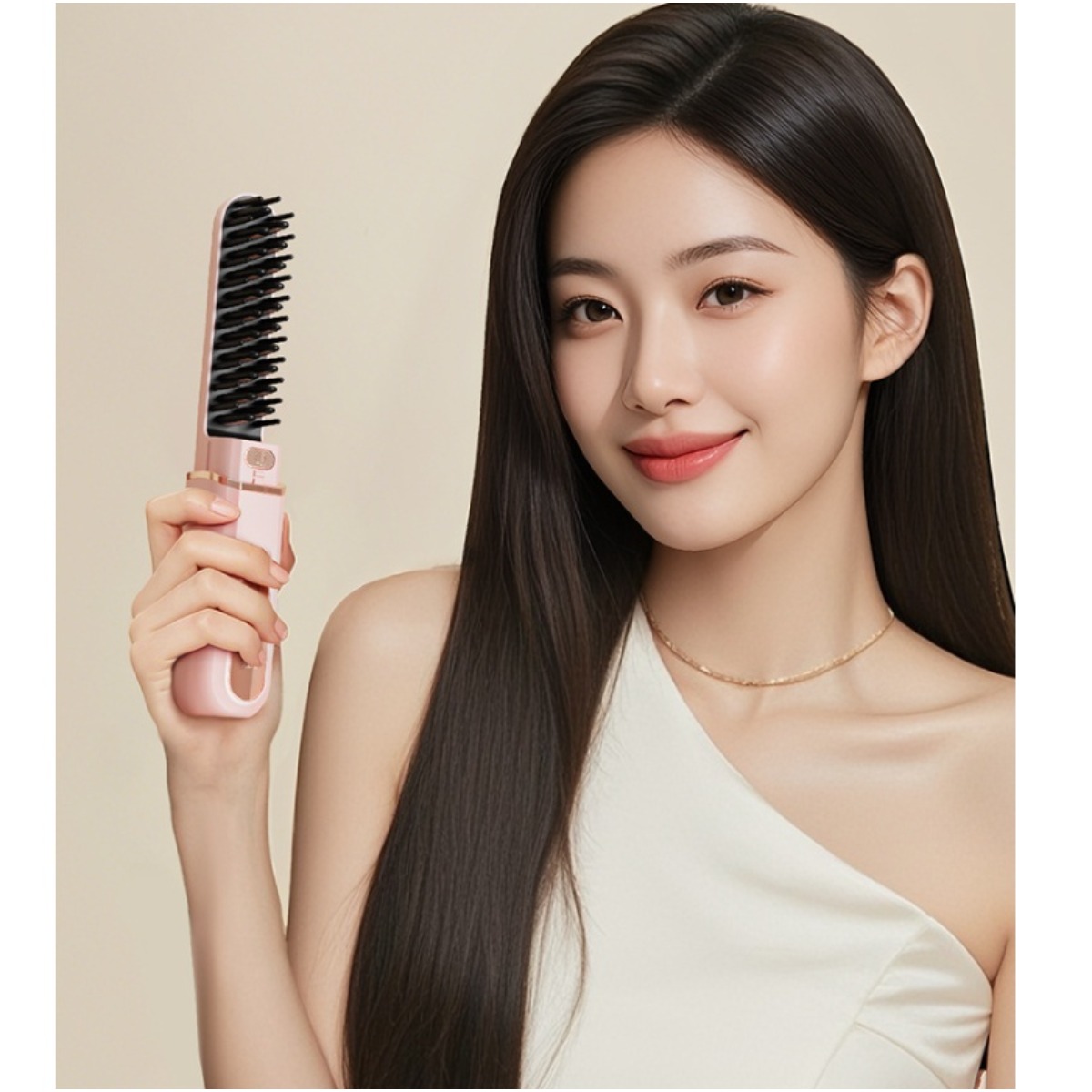 Brosse Lissante Sans Fil Classique - Peigne de Coiffure Portable et Idéal pour les Voyages Pink