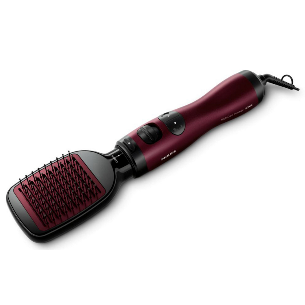 bha840/00 - brosse soufflante 800w - Brosse soufflante PHILIPS BHA840/00.Style bouclé ou lisse avec le boucleur soufflant automatique. Cette nouvelle brosse soufflante Brushing & Autocurl est fournie avec un accessoire boucleur soufflant automatique formant de belles boucles, une brosse plate pour des cheveux naturellement lisses et un embout séchoir respectant les cheveux en douceur. Séchez vos cheveux et créez des styles variés.L'accessoire boucleur soufflant automatique crée des ondulations et des boucles légères. Un fois vos cheveux secs à 80 %, placez une mèche de cheveux dans l'ouverture de l'accessoire boucleur soufflant automatique. Appuyez sur le bouton, et toute votre mèche disparaît dans le corps chauffant, où elle est séchée et mise en forme. Une superbe mèche bouclée est alors libérée, pour un magnifique style naturel.Deux sens de boucles pour des styles différents. Facile à manipuler, la brosse soufflante permet de créer des boucles vers la gauche et vers la droite, pour différents styles.Brosse plate de lissage, pour des cheveux naturellement lisses. La nouvelle brosse plate de lissage vous donne de superbes cheveux naturellement lisses sans les endommager. Concentrateur fin pour un flux d'air précis. Le concentrateur de la brosse soufflante canalise le flux d'air vers des zones ciblées, pour un séchage en douceur. Recommandé pour pré-sécher les cheveux avant leur mise en forme. Évite l'électricité statique : cheveux brillants, lisses, sans frisottis. Les ions négatifs éliminent l'électricité statique, renforcent vos cheveux et lissent les cuticules afin d'intensifier leur brillance. Résultat : des cheveux lisses, brillants et sans frisottis.Revêtement en céramique pour protéger vos cheveux. Revêtement en céramique pour mieux protéger vos cheveux.800 W de puissance pour des résultats exceptionnels. Cette brosse soufflante de 800 W produit un flux d'air optimal et une puissance de séchage douce, pour des résultats exceptionnels tous les jours.Air froid pour fixer votre coiffure. La touche air froid vous permet de fixer votre coiffure ou de sécher vos cheveux à une température relativement basse afin d'éviter de les abîmer.Cordon rotatif pour une maniabilité optimale. Pratique, le cordon rotatif tourne sur lui-même pour une maniabilité optimale.Cordon de 1,8 m pour une maniabilité maximale. La brosse soufflante est compacte et tient bien dans votre main.Grâce à son design ergonomique et à sa taille compacte, la brosse soufflante est simple et agréable à utiliser. - Système ionisant : Oui.
