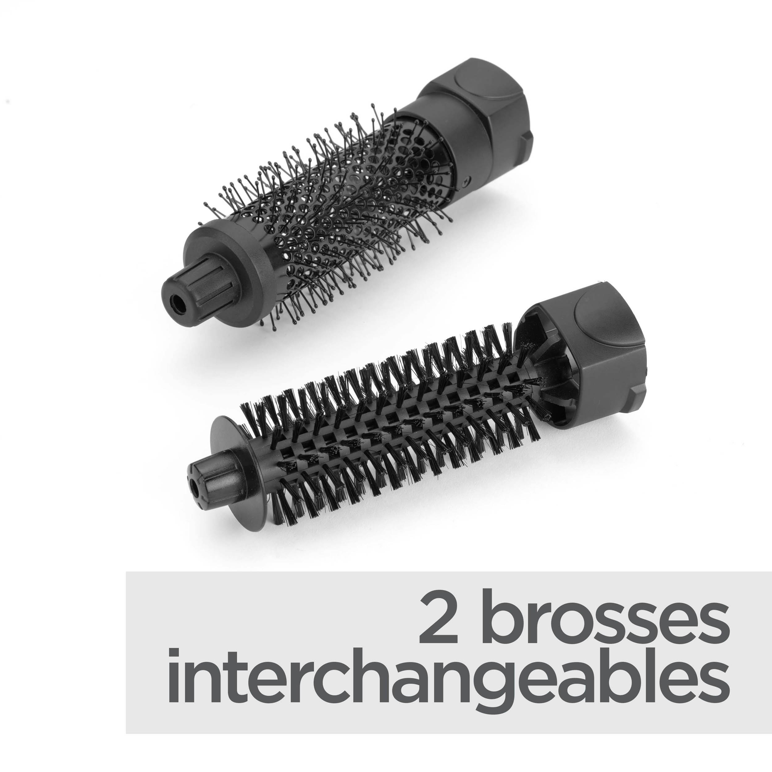 La brosse soufflante est dotée d'une puissance de 800 W et de deux brosses interchangeables pour mettre en forme vos cheveux tout en les séchant. La brosse 38 mm en céramique permet de créer du mouvement et de styliser votre coiffure, avec un rendu soyeux. La brosse 20 mm à poils doux permet de créer du volume, même en racine.